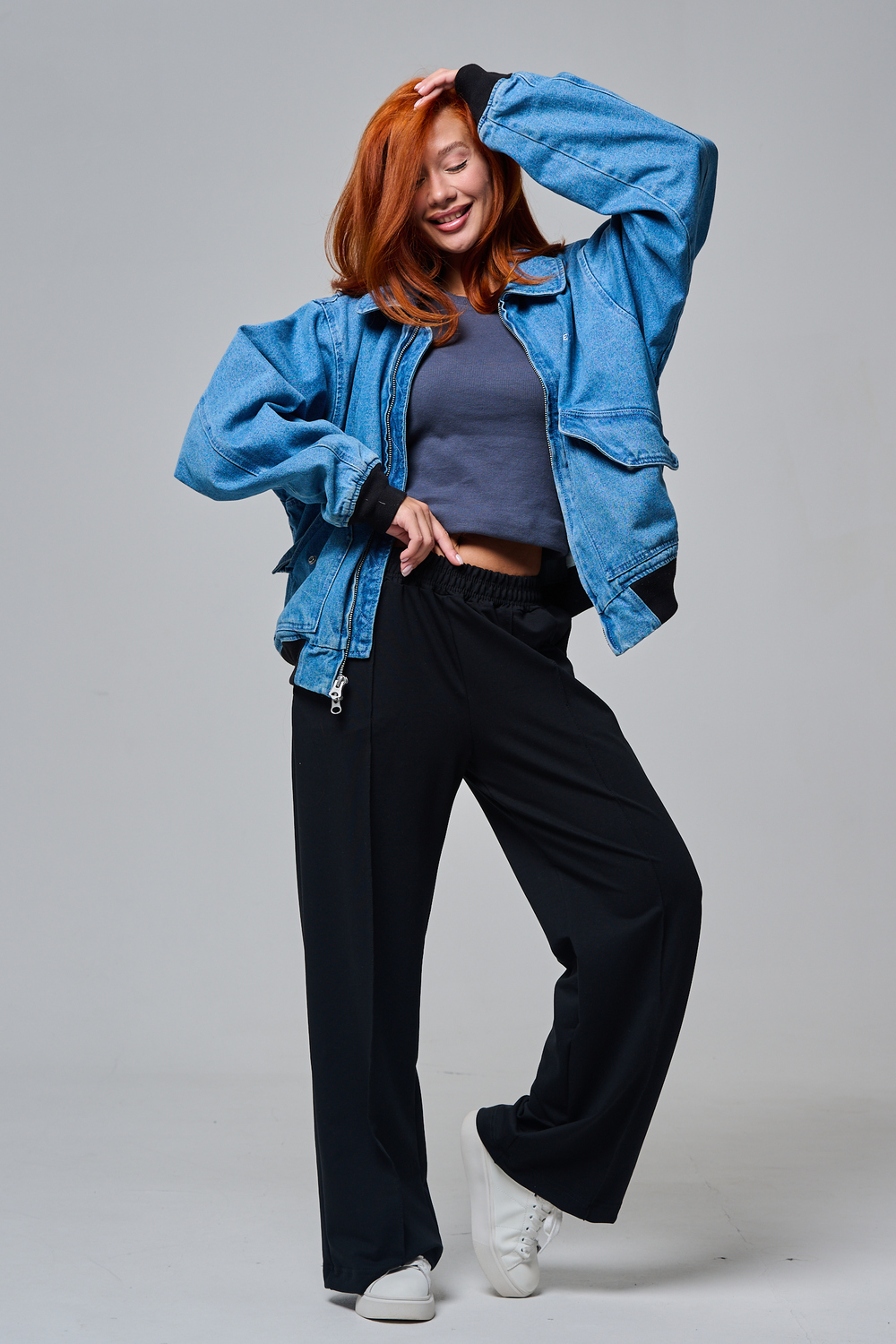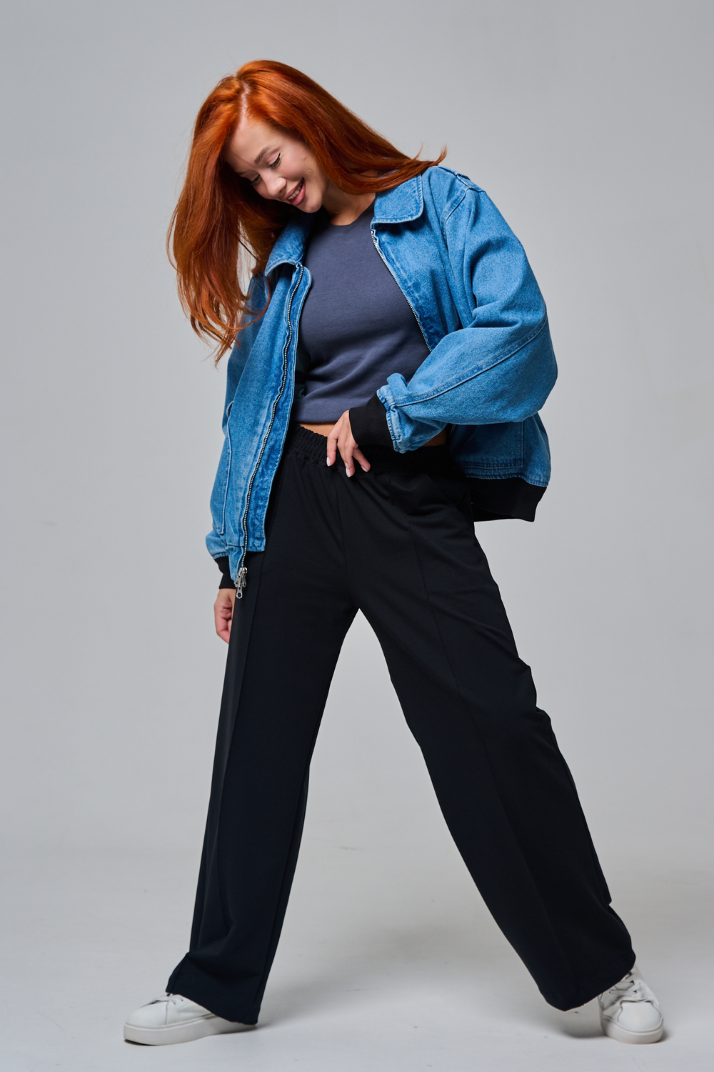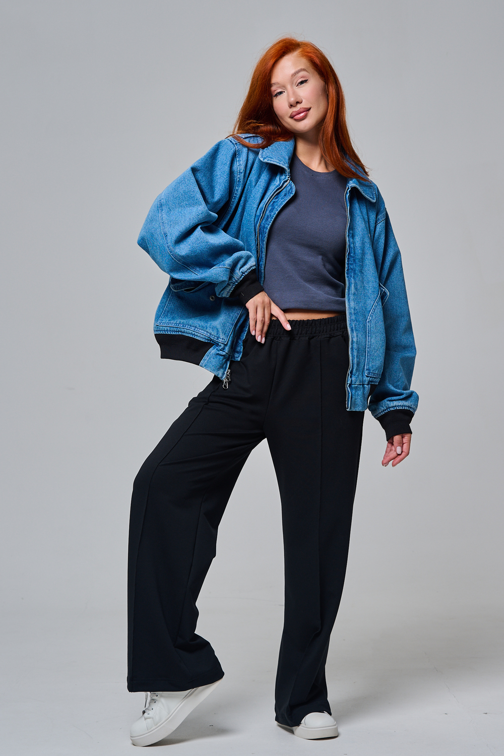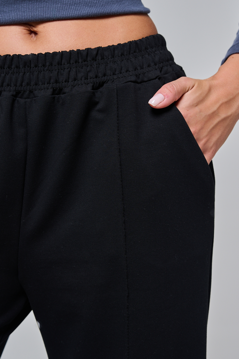 Эти элегантные широкие брюки "Urban Flow" — идеальный выбор для современного городского стиля, сочетающего комфорт и утонченность. Выполненные в классическом черном цвете, они созданы из мягкой, эластичной ткани (смесь хлопка и эластана), которая обеспечивает свободу движений и приятное ощущение на коже, словно вторая кожа. Дизайн подчеркивает женственность: высокая посадка с удобным эластичным поясом на шнуровке позволяет легко регулировать посадку, а объемные, струящиеся штанины от бедра до щиколотки создают эффектный силуэт, визуально удлиняющий ноги. Практичные боковые карманы добавляют функциональности, не нарушая минималистичный вид. Брюки "Urban Flow" универсальны: сочетайте их с облегающим топом и кроссовками для casual-образа или с блузкой и туфлями на каблуке для офисного шика.
