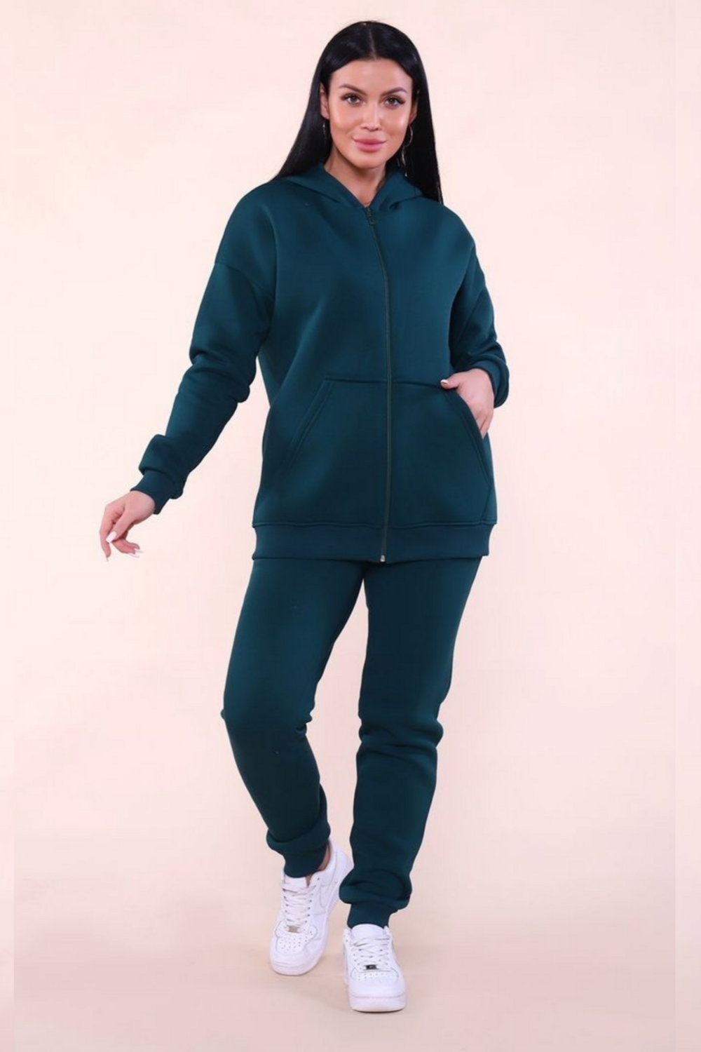 Этот утепленный костюм идеально подходит для холодных дней. Он выполнен из теплого материала с начесом внутри, обеспечивая комфорт и сохранение тепла. В комплект входит стильная толстовка с капюшоном на молнии с удобными теплыми джоггерами. Такой костюм отлично подойдет для прогулок, активного отдыха или повседневной носки в холодную погоду, сочетая тепло, комфорт и стиль.