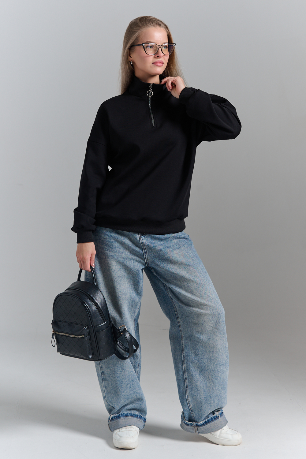 Однотонный свитшот это стильная и универсальная вещь. Он актуален даже без принта, рисунка, надписи и других дополнительных деталей. Слегка удлиненный пуловер подойдет для среднего, невысокого и высокого роста. Толстовку с высоким воротом. Такая одежда подойдет на каждый день, отлично впишется в универсальный базовый повседневный гардероб. Длина рукава измеряется от горловины.