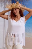 Футболка оверсайз женская с бахромой прекрасно подойдет для повседневной носки и для создания стильного образа.