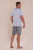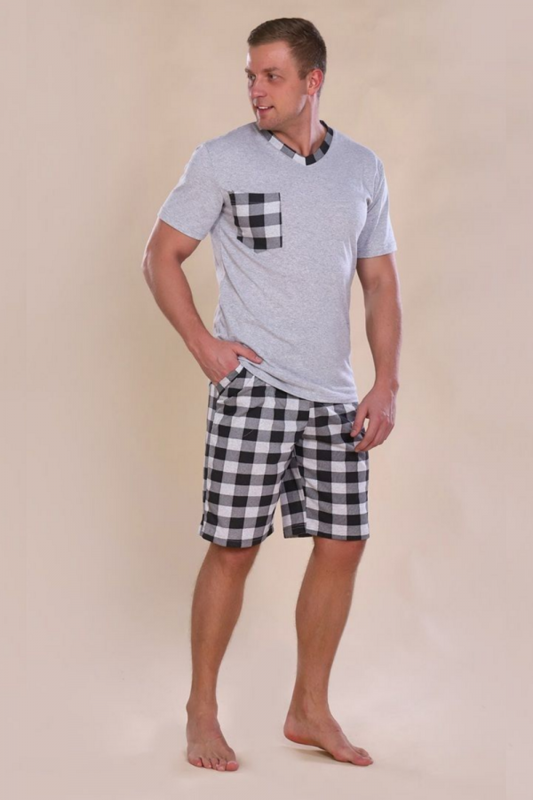 Этот мужской костюм представляет собой комплект для повседневного или домашнего использования, состоящий из белой футболки свободного кроя и темно-синих шорт в клетку. Основные характеристики Материал: Обе составляющие части выполнены из 100% хлопка, что обеспечивает комфорт, воздухопроницаемость и гипоаллергенность. Футболка: Белого цвета, свободного кроя (оверсайз), что подразумевает более широкую и длинную модель по сравнению с классическими футболками. Она оснащена накладным карманом на груди. Шорты: Темно-синего цвета с рисунком в клетку. Имеют карманы и пояс на резинке. Размерный ряд: Представлен в широком ассортименте размеров, включая большие размеры (от 48 до 62). Этот комплект сочетает в себе стиль и практичность, идеально подходит для отдыха или неформальных мероприятий.