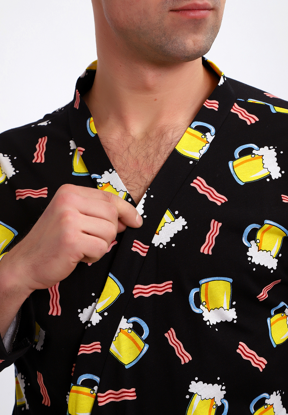 Мужской халат в клетку из хлопка — это отличный выбор для домашнего уюта и комфорта. Такие халаты обычно имеют свободный крой, что обеспечивает легкость движений, и запашной фасон, который позволяет регулировать плотность облегания благодаря поясу. Хлопок — это натуральный материал, который отлично пропускает воздух, не вызывает раздражения на коже и очень приятен к телу, что делает его идеальным для повседневного ношения. Клетчатый узор придаёт халату стильный вид, что позволяет использовать его как для утренних процедур, так и для вечеров на диване.