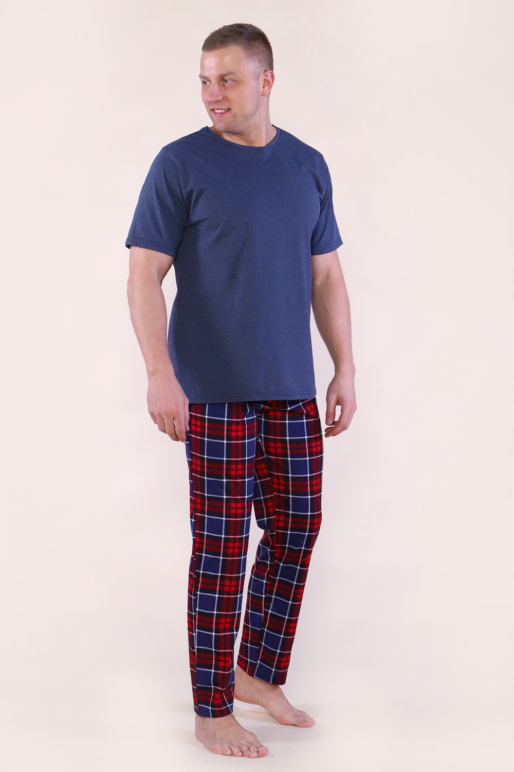Комплект домашней одежды для мужчин от «Руся трикотаж»: уют и стиль Представляем вашему вниманию идеальное решение для комфортного времяпрепровождения дома — комплект от российского бренда «Руся трикотаж», состоящий из футболки и свободных брюк. В этом комплекте два предмета, созданные для вашего отдыха: Футболка синий меланж: Материал: 100% хлопок. Прекрасно «дышит», гипоаллергенен и приятен к телу, обеспечивая максимальный комфорт в течение всего дня. Крой: Свободный фасон не стесняет движений, позволяя вам чувствовать себя легко и расслабленно. Брюки в клетку: Стиль: Свободные брюки в классическую клетку — воплощение домашнего уюта и непринужденности. Материал: Легкая, мягкая ткань, неощутимая на теле. Дизайн: Стильный клетчатый узор добавляет образу изюминку, позволяя вам выглядеть хорошо даже дома. Применение: Этот комплект станет вашим любимым спутником для долгих вечеров, ленивых выходных, чтения книг или просмотра фильмов. Он идеально сочетает в себе функциональность, комфорт и стиль.