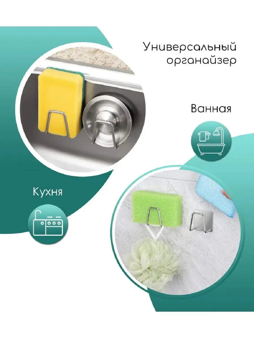 Порядок на кухне – это легко. Губки для мытья посуды больше не будут валяться по всей раковине. Раковина для кухни тоже может служить образцом чистоты и порядка. Меламиновая губка для посуды долго сохнет и оставляет следы - больше это не проблема. Кухонный кран станет свободен от тряпочек и губок и перестанет лишний раз ржаветь и собирать известковый налет. Универсальный кухонный держатель крючок будет незаменим в вашем доме. ержатель можно использовать для кухонного инвентаря, как держатель подставка для крышек кастрюль, подставка для кухонных приборов, металлической губки (железная), разделочных досок и он лаконично впишется в любой интерьер. Это своего рода вешалка для кухонных принадлежностей 21 века.