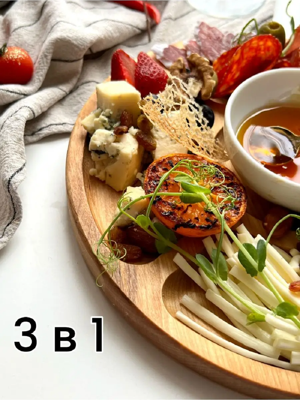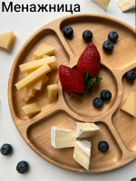 Менажница из натурального дерева это оригинальный подарок на день рождения, 8 марта, 14 февраля, годовщину, новоселье и любой другой праздник для мамы, подруги, сестры, бабушки или коллеги. Круглая деревянная менажница имеет 5 вместительных ячеек, в них можно положить сладости для детей, сухофрукты, орехи, нарезки сыра. Посуда из дерева подойдет для романтического ужина, пикника, можно устроить завтрак в постель . Декоративная посуда для кухни двусторонняя оборотную сторону деревянной менажницы так же используют как : сервировочная доска, разделочная доска, доска для подачи.