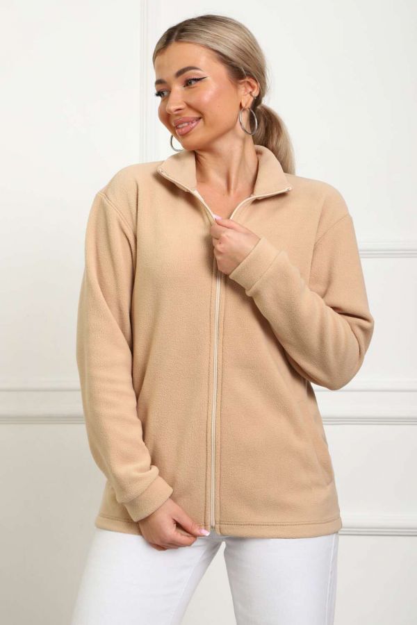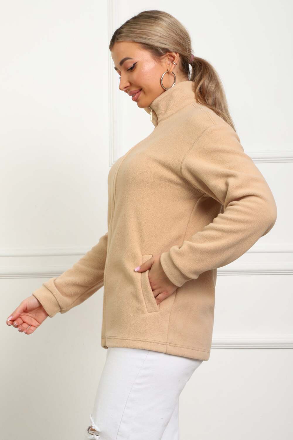 Куртка женская из флиса. Силуэт прямой. Длинна до середины бедра. Воротник стойка. Карман листочка. Рукав втачной, на манжете. Линия плеч чуть спущена. Застежка на тесьму молнию. Отделкой служат отделочные строчки с застилом.
