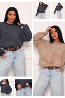 Свитшот женский сложного кроя, из трикотажного полотна с напылением, которое создает эффект стиля винтаж. Свитшот свободного облегания, рукав летучая мышь, на манжете. Горловина круглой формы, обработана обтачкой. Низ изделия на регулируемой кулисе со шнуром. Манжеты и обтачка горловины выполнены из кашкорсе в цвет основной ткани.