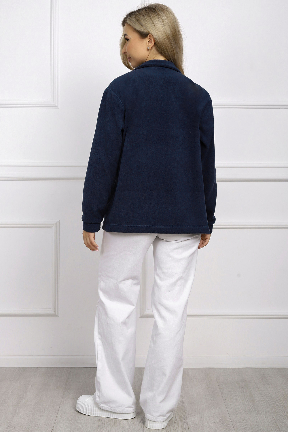 Куртка женская из флиса. Силуэт прямой. Длинна до середины бедра. Воротник стойка. Карман листочка. Рукав втачной, на манжете. Линия плеч чуть спущена. Застежка на тесьму молнию. Отделкой служат отделочные строчки с застилом