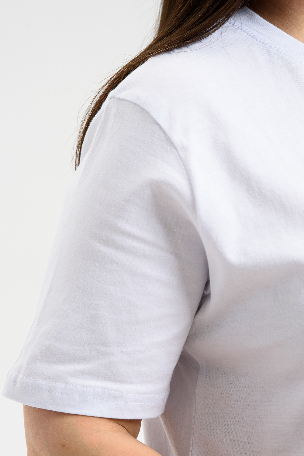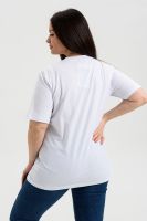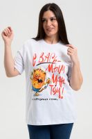 Футболка это идеальный выбор для женщин, предпочитающих комфорт и стиль. Сделанная из 100% хлопка, эта футболка обеспечивает отличную дышащую способность, делая её идеальной для домашнего использования, пляжного отдыха или просто для повседневного ношения. Уникальный принт на передней части добавляет элемент индивидуальности и стиля, делая эту футболку отличным дополнением к вашему гардеробу.