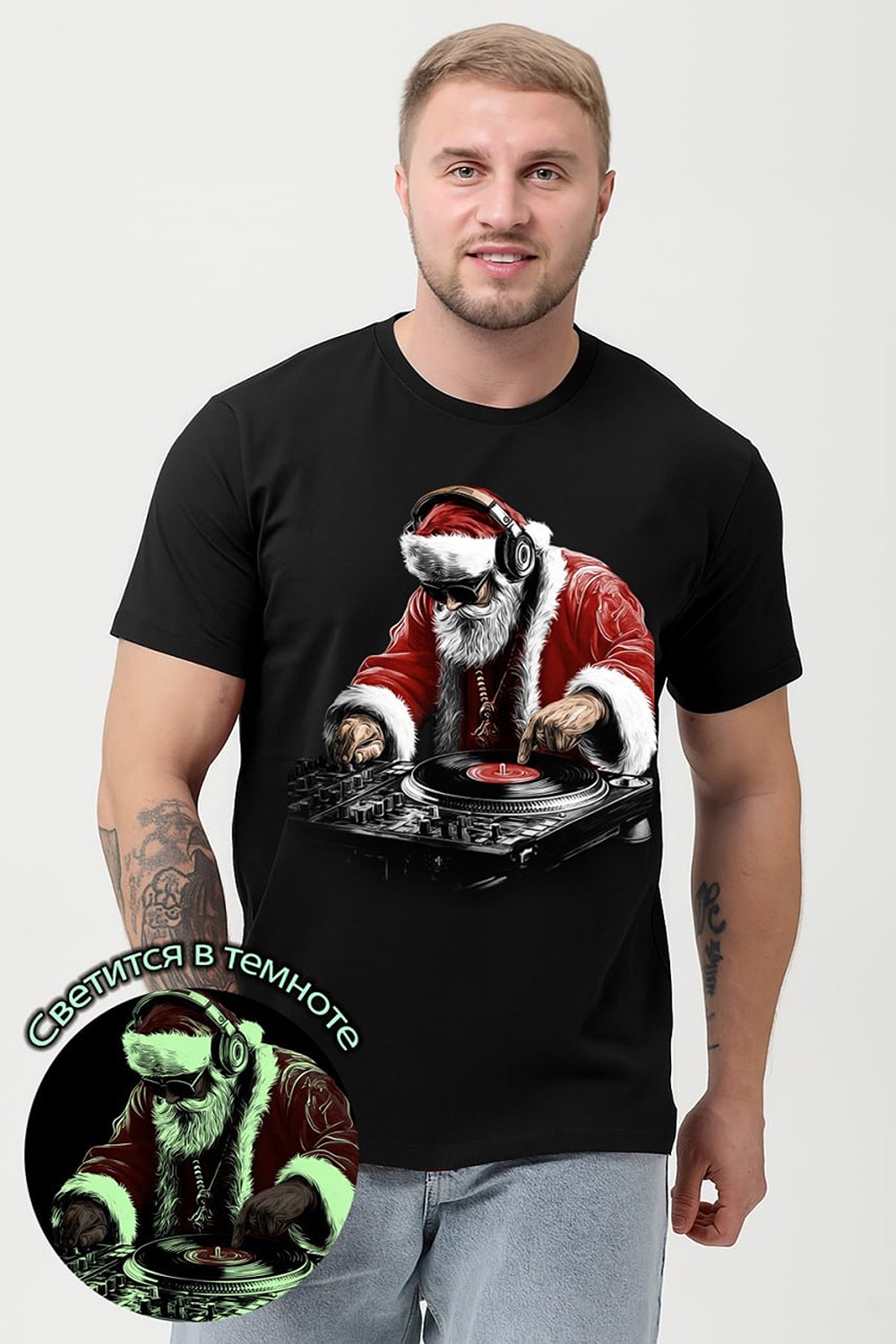 Погрузитесь в атмосферу праздничного рока с этой стильной чёрной футболкой! Главный герой — Санта-Клаус в образе крутого гитариста: красный костюм с меховой оторочкой, белая борода, озорная улыбка и электрогитара в руках. Он стоит в динамичной позе, готовый зажечь сцену, а на ногах — модные кеды. Дизайн выполнен в контрастных чёрно-красных тонах с детализированными элементами, включая татуировки на руках. Особенность: принт светится в темноте! В ультрафиолетовом свете или полной темноте Санта засияет зелёным свечением — идеально для новогодних вечеринок, концертов или просто для wow-эффекта. Футболка из мягкого хлопкового трикотажа , oversize-крой для комфорта, круглый вырез. Размеры: 46-60. Подходит для casual-луков с джинсами или шортами.