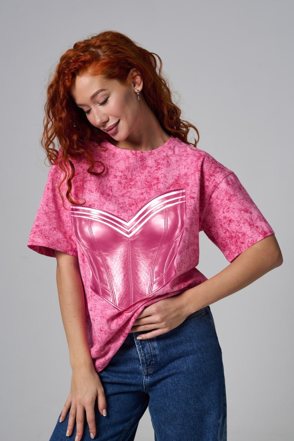 8594 футболка женская оверсайз [фуксия+корсет]