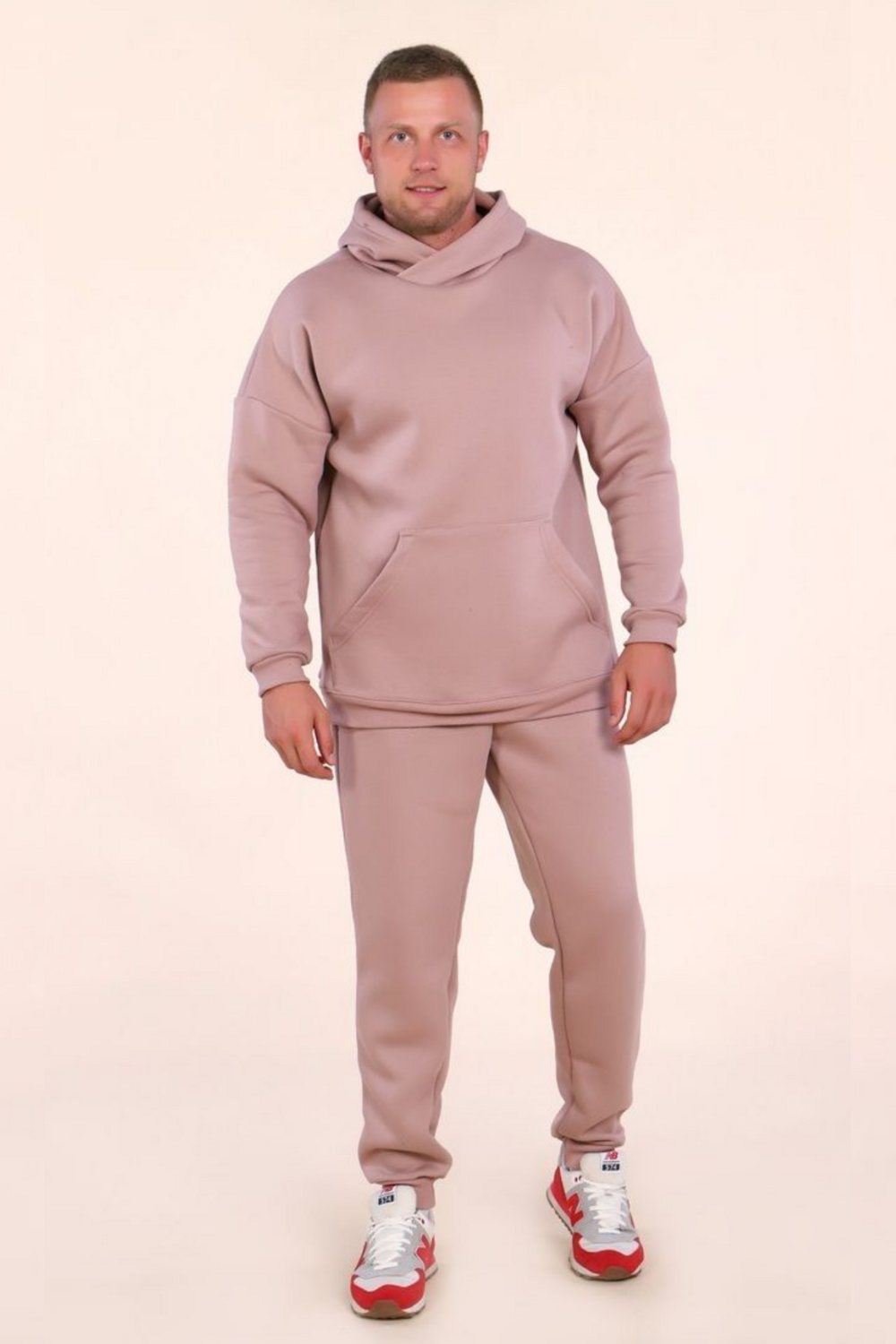 Этот мужской утепленный костюм идеально подходит для холодной погоды. Верхняя часть — уютное худи с кенгуру-кармана и мягким начесом внутри, обеспечивающим тепло и комфорт. Модель выполнена из прочного, теплого материала, который сохраняет тепло и защищает от ветра. Брюки-джоггеры с эластичным поясом и манжетами отлично сидят и позволяют свободно двигаться. Вся конструкция сочетает стиль и функциональность, делая этот костюм отличным выбором для прогулок, активного отдыха или повседневной носки в холодное время года.
