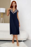 Ночная сорочка женская длинная из вискозного полотна. Ночнушка А-силуэта полуприталенного кроя. Эффектная и стильная рубашка для сна и отдыха – отличный наряд для дома. Рукав крылышком и глубокий вырез горловины сделаны из эластичного кружева. Кружевной вырез подчеркивает зону декольте. Состав ткани 92 % вискоза и 8 % эластан. Ночнушку удобно надеть и для сна и использовать как домашнее платье. Натуральная шелковистая ткань позволяет коже дышать, превращает сорочку в комфортную одежду для дома. Эластичное и эффектное кружево добавляет сексуальности и женственности. Она понравится тем, кто ищет удобную и красивую ночную одежду. Данная модель подходит для девушек и женщин всех возрастов, благодаря крою подойдет для беременных и кормящих мам.