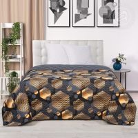 Покрывало защищает постельное белье от загрязнений, а также выполняет декоративную функцию, меняя облик комнаты в лучшую сторону. Снаружи изделия выполнены из материала, в основе которого лежит 100% хлопок. Натуральное волокно не вызывает аллергии и абсолютно безопасно для здоровья. К главным достоинствам бязи относят также высокую воздухопроницаемость и износостойкость. В качестве наполнителя используется полиэфирное волокно. Оно отличается легкостью и высокими теплоизоляционными характеристиками и хорошо сохраняет форму.