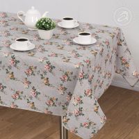 Скатерть «Ансамбль» из рогожки в теплой льняной расцветке дополнена элегантной цветочной композицией в стиле шебби-шик. Чудесные бутоны с нежными лепестками обрамлены зелеными листиками. Благодаря повторяющимся мотивам, рисунок с цветами выглядит объемным, воздушным и лаконичным. С готовыми изделиями «Ансамбль» из 100% хлопка на кухне будет царить атмосфера уюта, легкости и романтики.