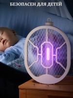 Мухобойка электрическая, ракетка от комаров, электромухобойка. Мухобойка с электрической сеткой в виде ракетки предназначена для борьбы с насекомыми внутри помещений и на улице. Мухобойка электрическая 3в1, вертикальная мухобойка, горизонтльная, ручная мухобойка. Вы можете также использовать ее как москитную лампу. Ракетка мухоловка эффективно уничтожает комаров, ос, мух, слепней разрядами электрического тока. Такой способ уничтожения насекомых избавит вас от следов на стенах и потолке. В режиме лампы ловушки для комаров фиолетовая подсветка привлекает насекомых, что делает работу устройства еще эффективнее в темное время суток. Вы можете оставить устройство на ночь в комнате, закрепив на стене или на столе, чтобы насекомые не беспокоили ваш сон. Электрическая мухобойка незаменимый защитник вашего сна! Антимоскитная лампа от комаров со специальной электрической сеткой с высоким напряжением, уничтожающая москитов при касании, летящих на свет, имеет защиту от прикосновения людей. Анти москитный электро шокер не даст шансов комарам! Избавьте себя от назойливого ночного писка и укусов! Электромухобойка безопасна для людей. При нажатии на кнопку, на внутреннюю сетку подается разряд тока, смертельный для насекомых.