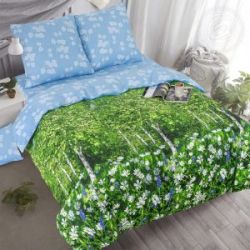 Любите ли вы гулять по лесу? Наслаждаться умиротворением и тишиной, прислушиваться к трелям птиц и любоваться красотой деревьев? С нашим постельным бельем с природой делать это можно, даже не выходя из дома. Ведь здесь изображена летняя сказочная композиция с березовой рощей, охапкой ромашек и голубым небом. Белая береза и нежная ромашка – символы нашего фольклора. Они тесно связаны с культурой, сказками, стихами. «Белая березонька» – дизайн, который вдохновляет. Он дарит чувство отдыха и гармонии.