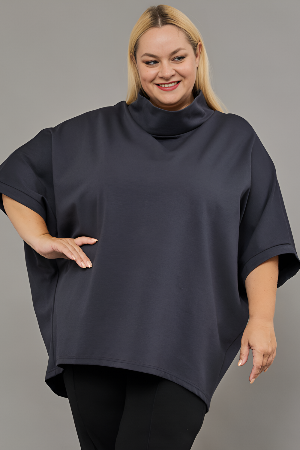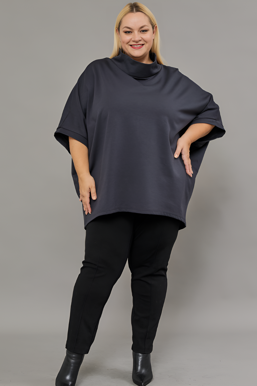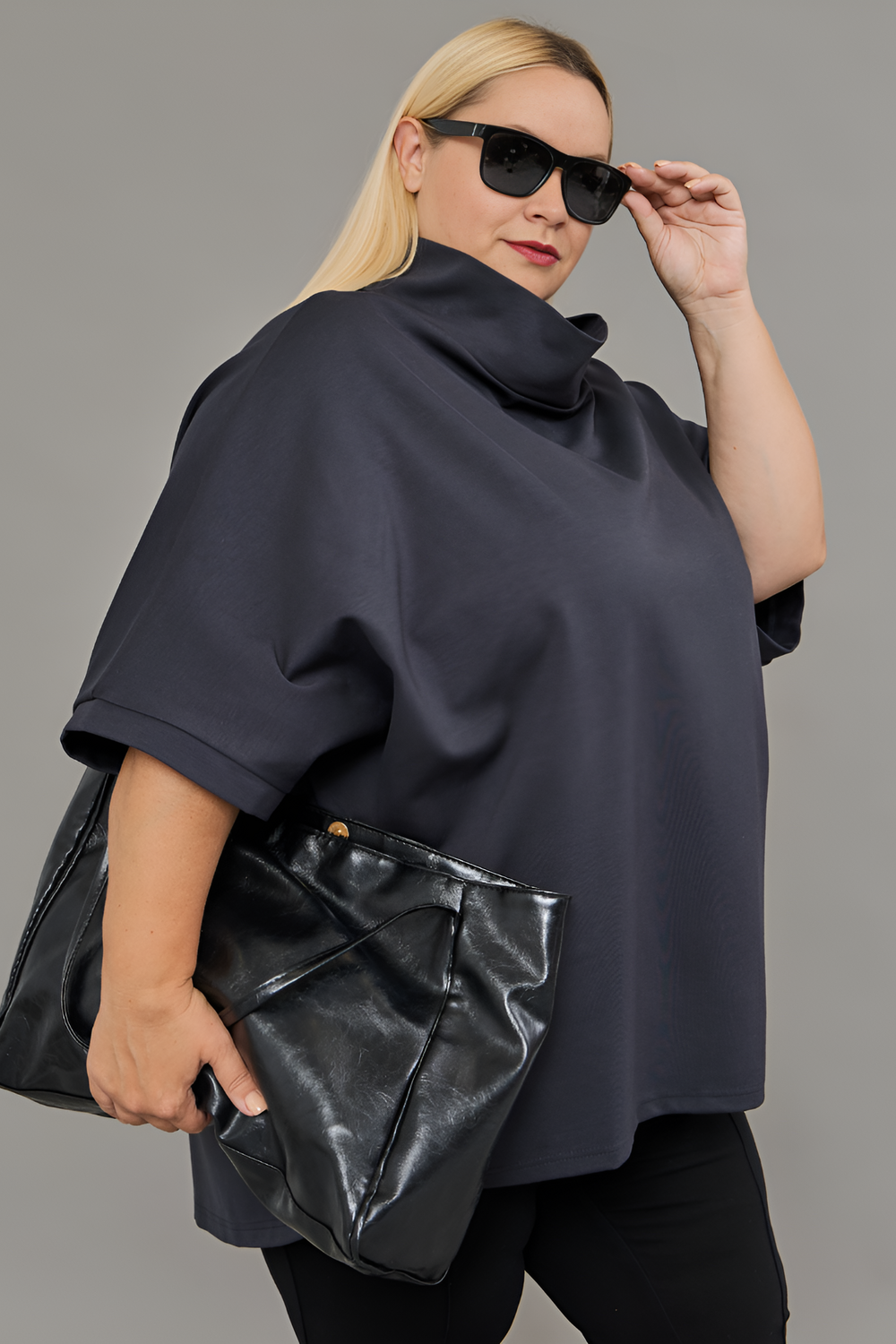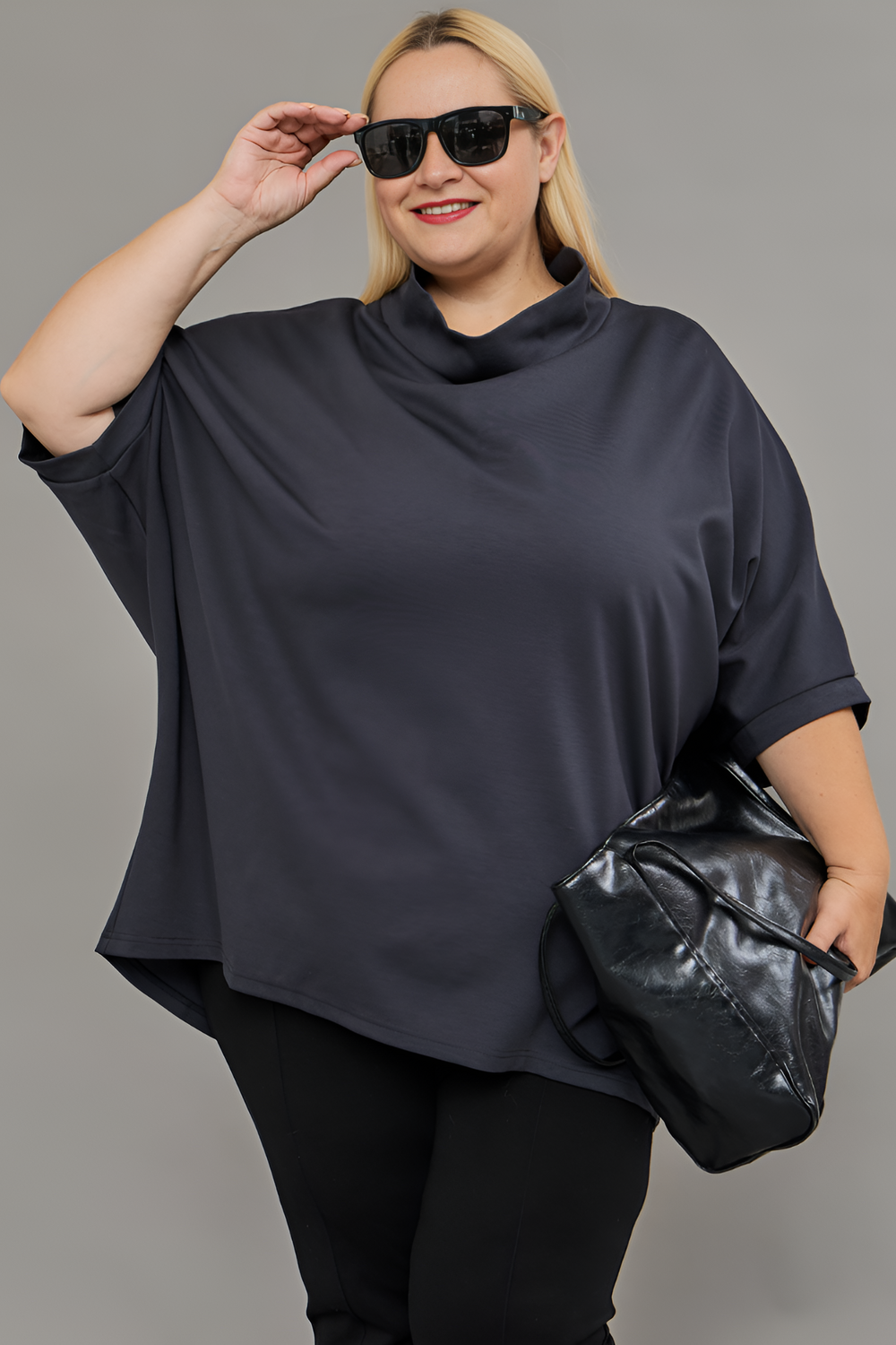Представляем вам стильную и женственную тунику-блузку от бренда В Размере, которая станет настоящим украшением вашего гардероба. Эта модель, выполненная из приятного к телу трикотажа с добавлением эластана, идеально подойдет для создания как повседневных, так и более нарядных образов. Благодаря свободному крою трапеция и рукавам летучая мышь, туника комфортно сидит на фигуре, скрывая недостатки и подчеркивая достоинства. Темно-серый или графитовый цвет этой блузки легко сочетается с любыми другими оттенками, а однотонный дизайн позволяет создавать как строгие, так и более оригинальные луки. Представьте: вы надеваете эту тунику с любимыми джинсами, добавляете стильные аксессуары и получаете модный кэжуал образ, готовый покорить городские улицы. А для вечернего выхода достаточно дополнить ее элегантными брюками или юбкой - и вы будете выглядеть просто шикарно! Эта туника - настоящий must-have для любой современной женщины, ценящей комфорт, стиль и качество.