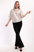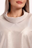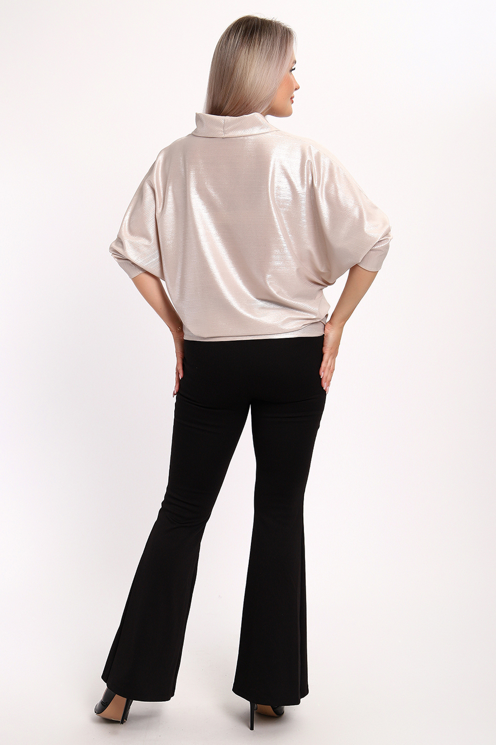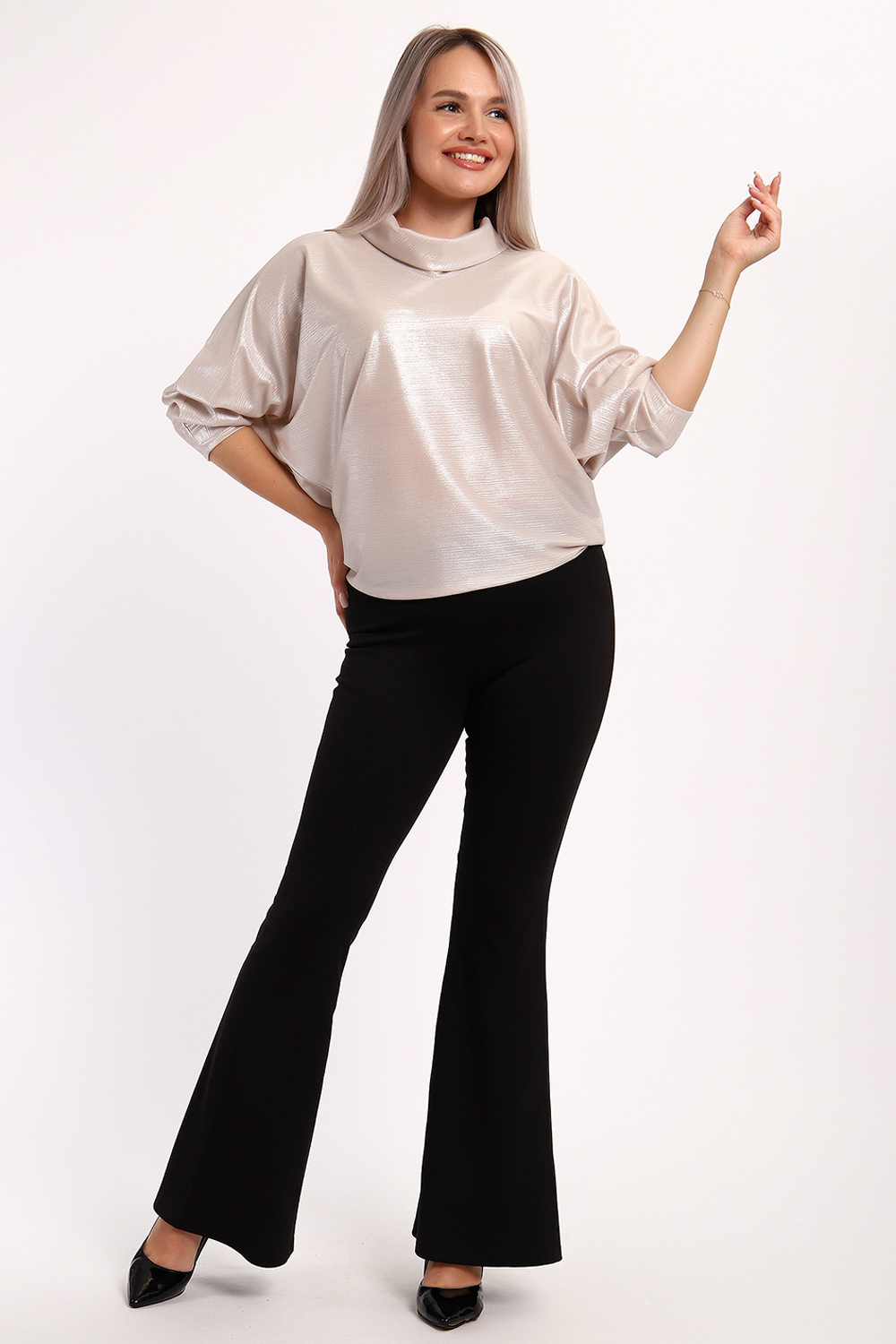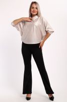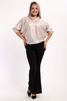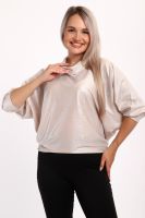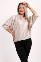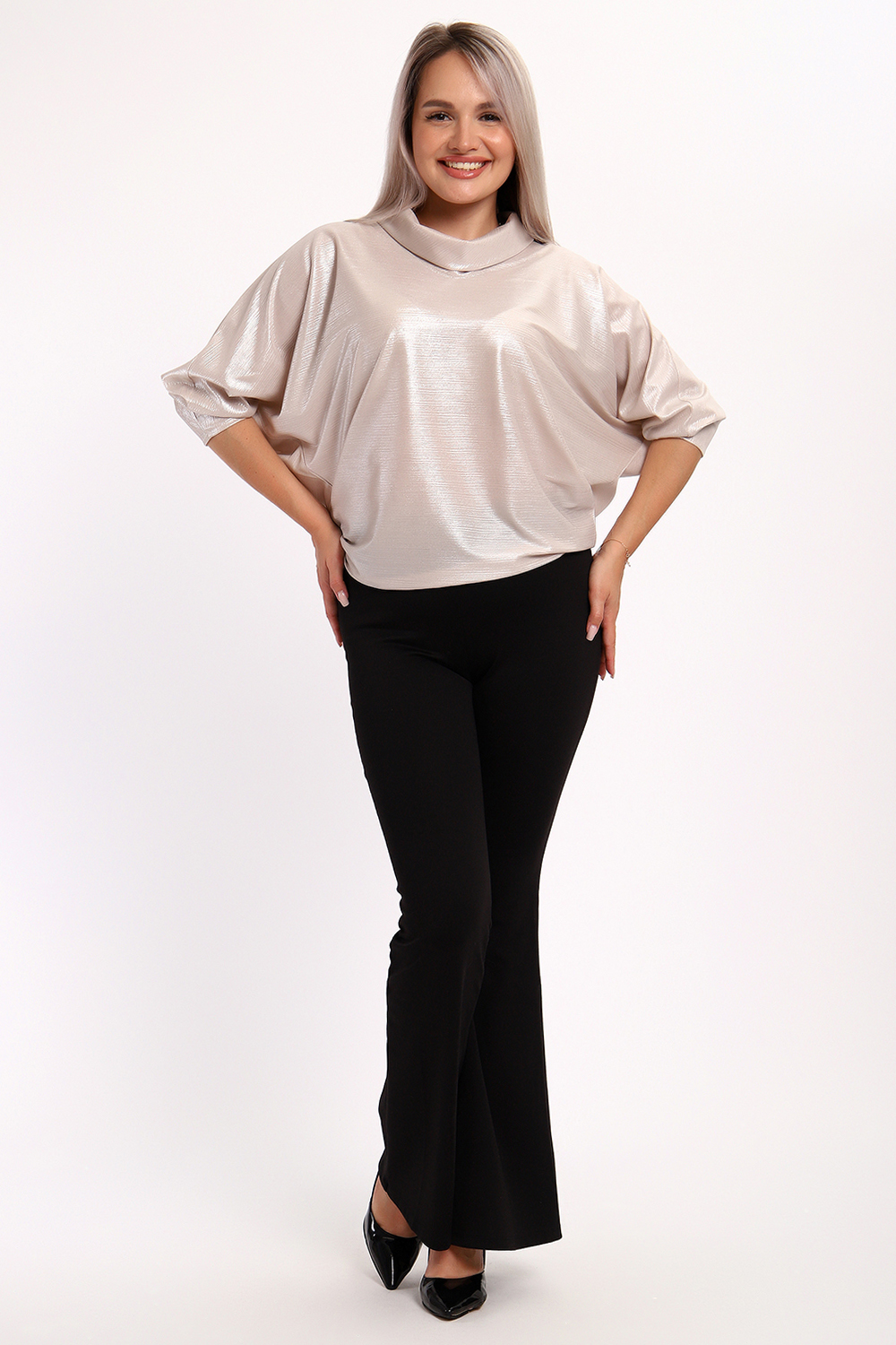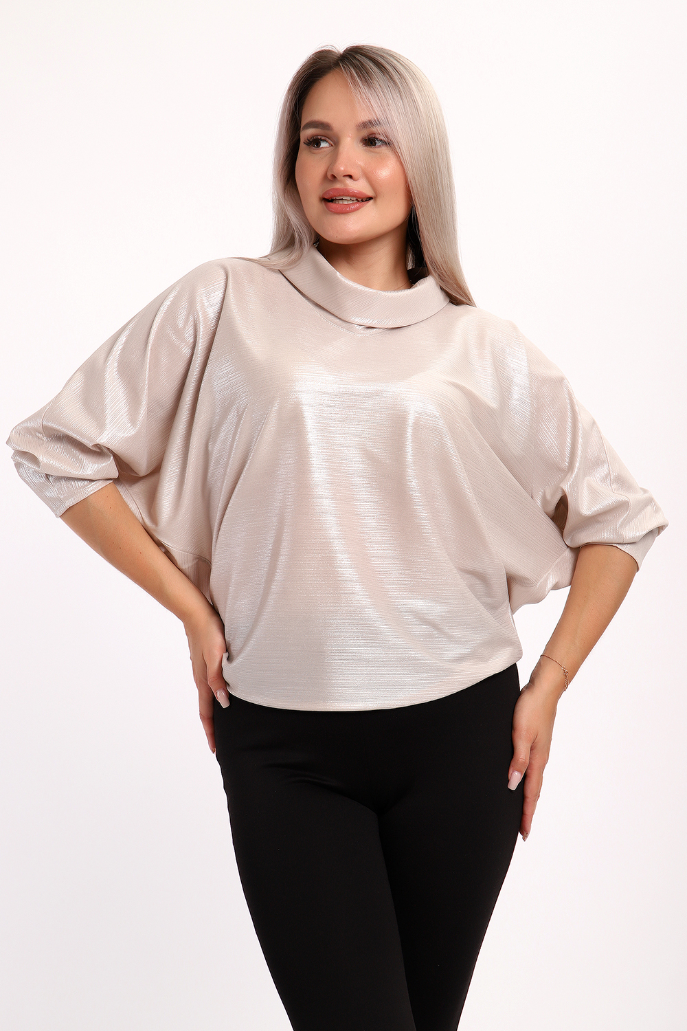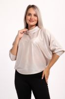 Нарядная и эффектная блузка из ткани шифон- металлик. Ткань тонкая, слегка прозрачная, имеет красивый металлический блеск, переливаясь на складках изделия, не мнется и отлично драпируется. Свободный крой и рукав "летучая мышь" делает эту блузку универсальной, подходящей на любую фигуру. Длина рукава 3/4, воротник- хомут придает женственности образу. Блузка слегка заужена к низу, чтобы на бедрах образовался напуск. С помощью этой блузки можно создать и праздничный, и деловой, и повседневный образ, комбинировать с юбкой и брюками. Широкий размерный ряд - с 48 по 62 размеры. Рекомендуем стирать изделие в режиме бережной стирки или вручную.