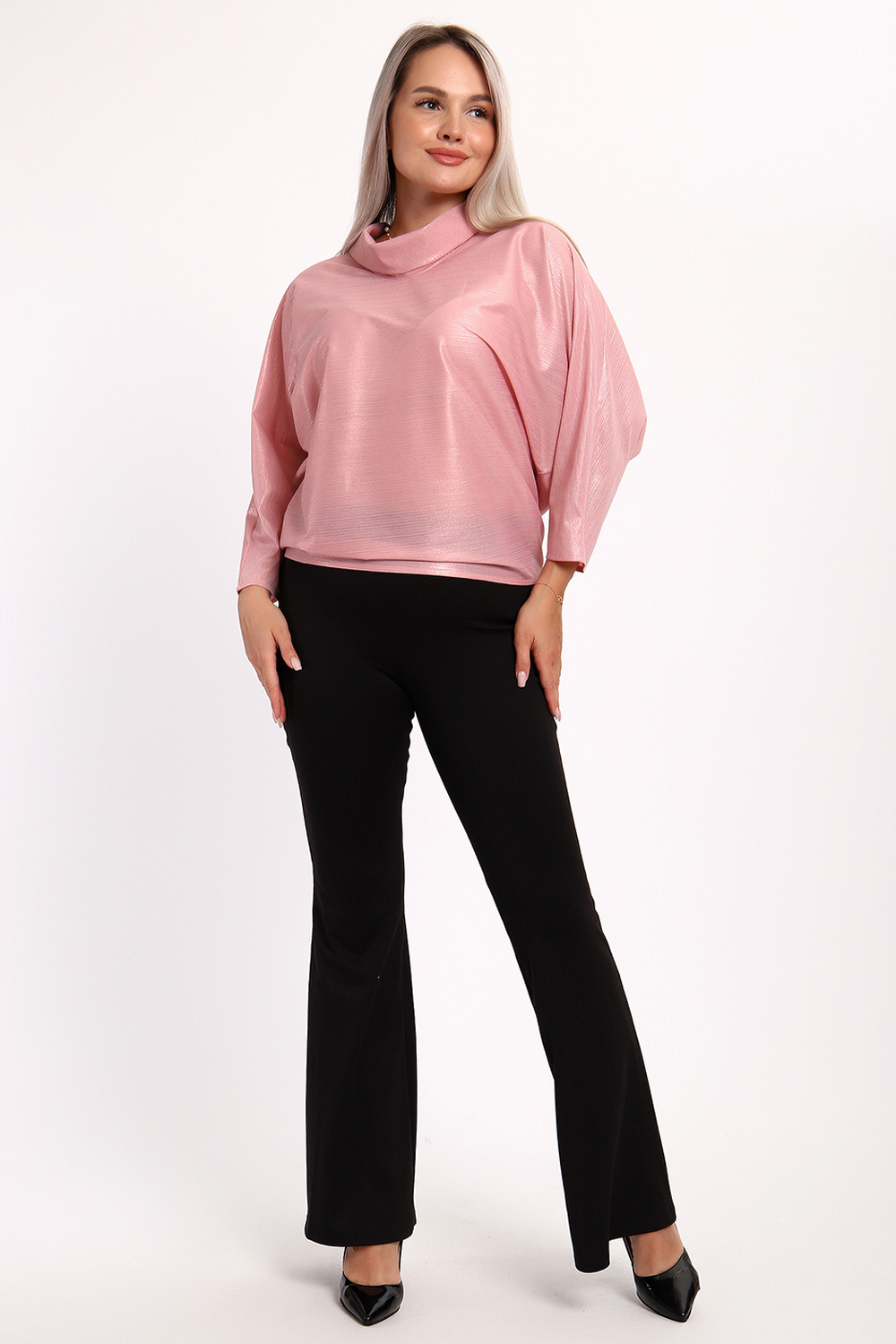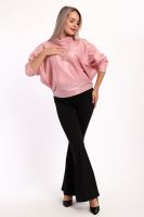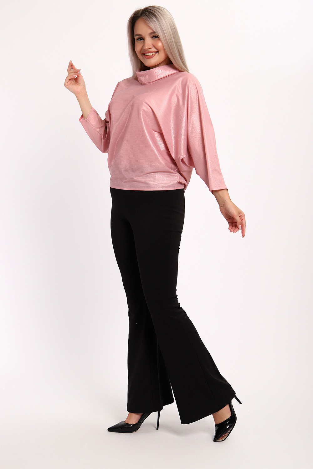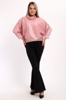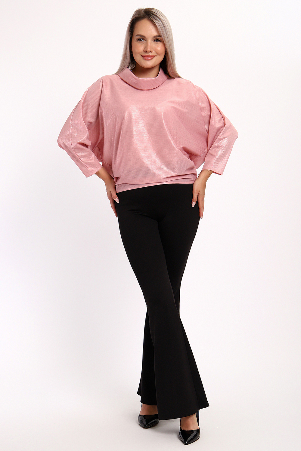 Нарядная и эффектная блузка из ткани шифон- металлик. Ткань тонкая, слегка прозрачная, имеет красивый металлический блеск, переливаясь на складках изделия, не мнется и отлично драпируется. Свободный крой и рукав "летучая мышь" делает эту блузку универсальной, подходящей на любую фигуру. Длина рукава 3/4, воротник- хомут придает женственности образу. Блузка слегка заужена к низу, чтобы на бедрах образовался напуск. С помощью этой блузки можно создать и праздничный, и деловой, и повседневный образ, комбинировать с юбкой и брюками. Широкий размерный ряд - с 48 по 62 размеры. Рекомендуем стирать изделие в режиме бережной стирки или вручную.