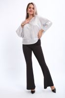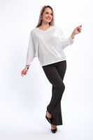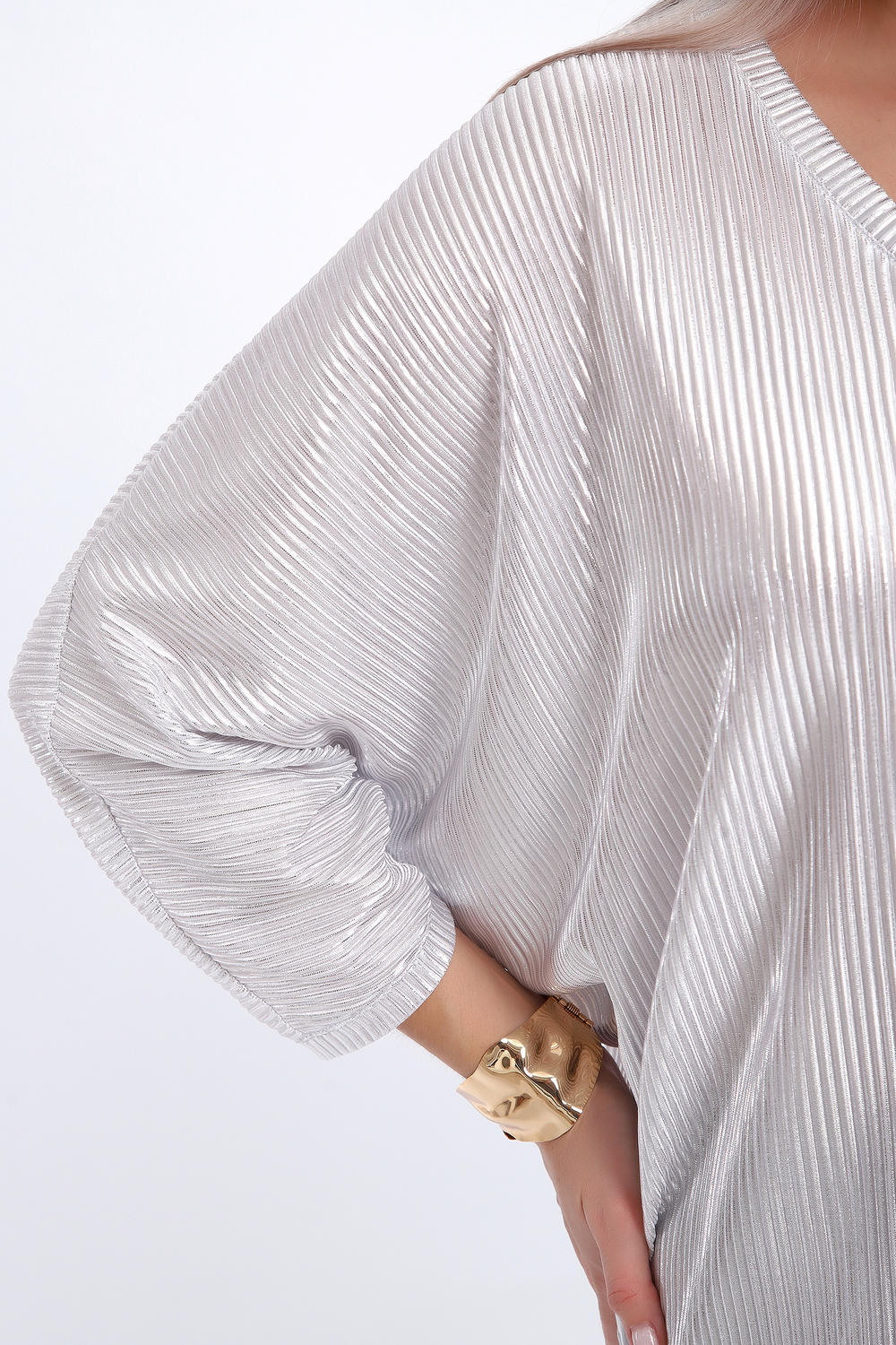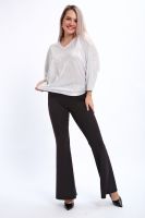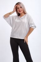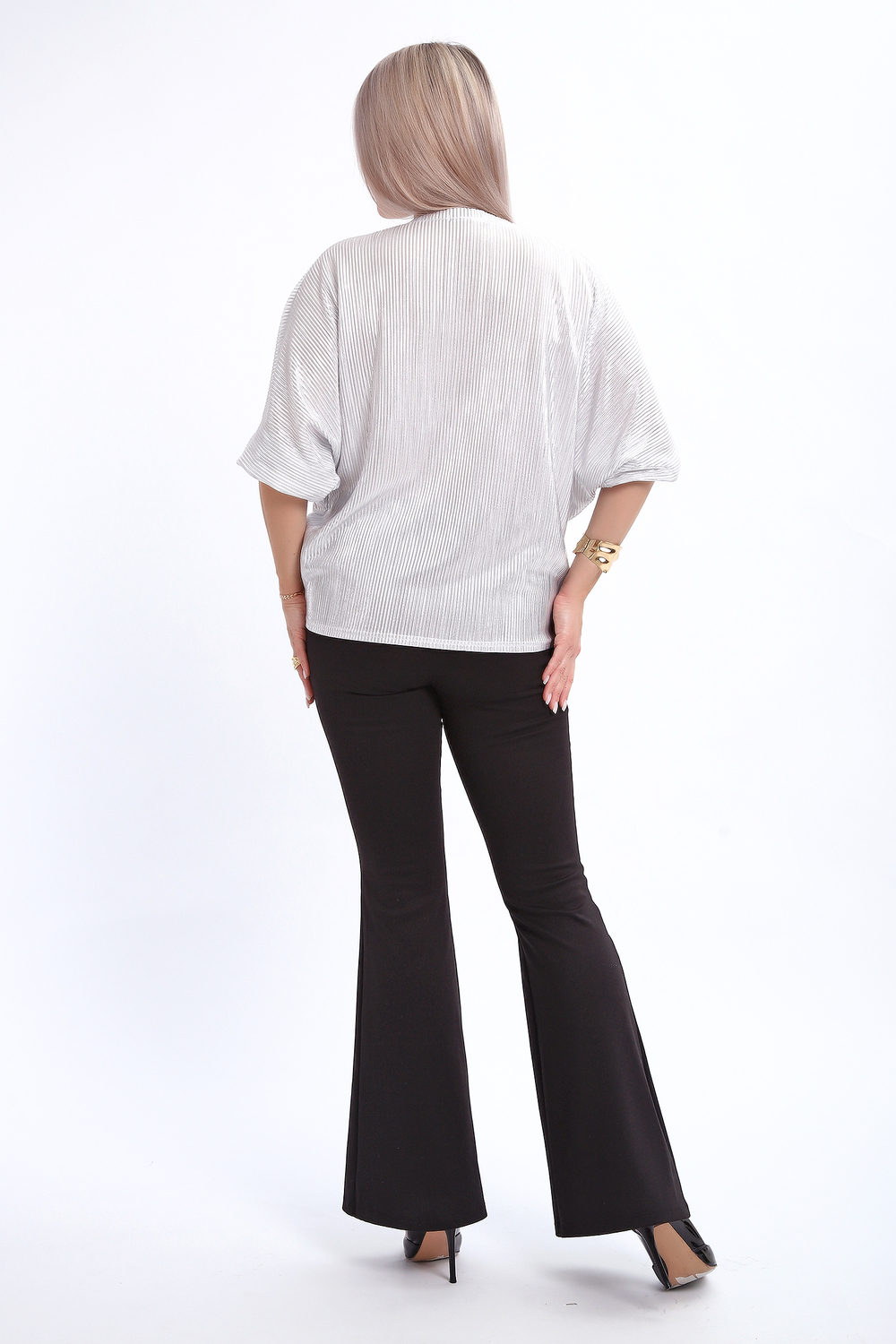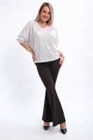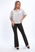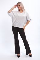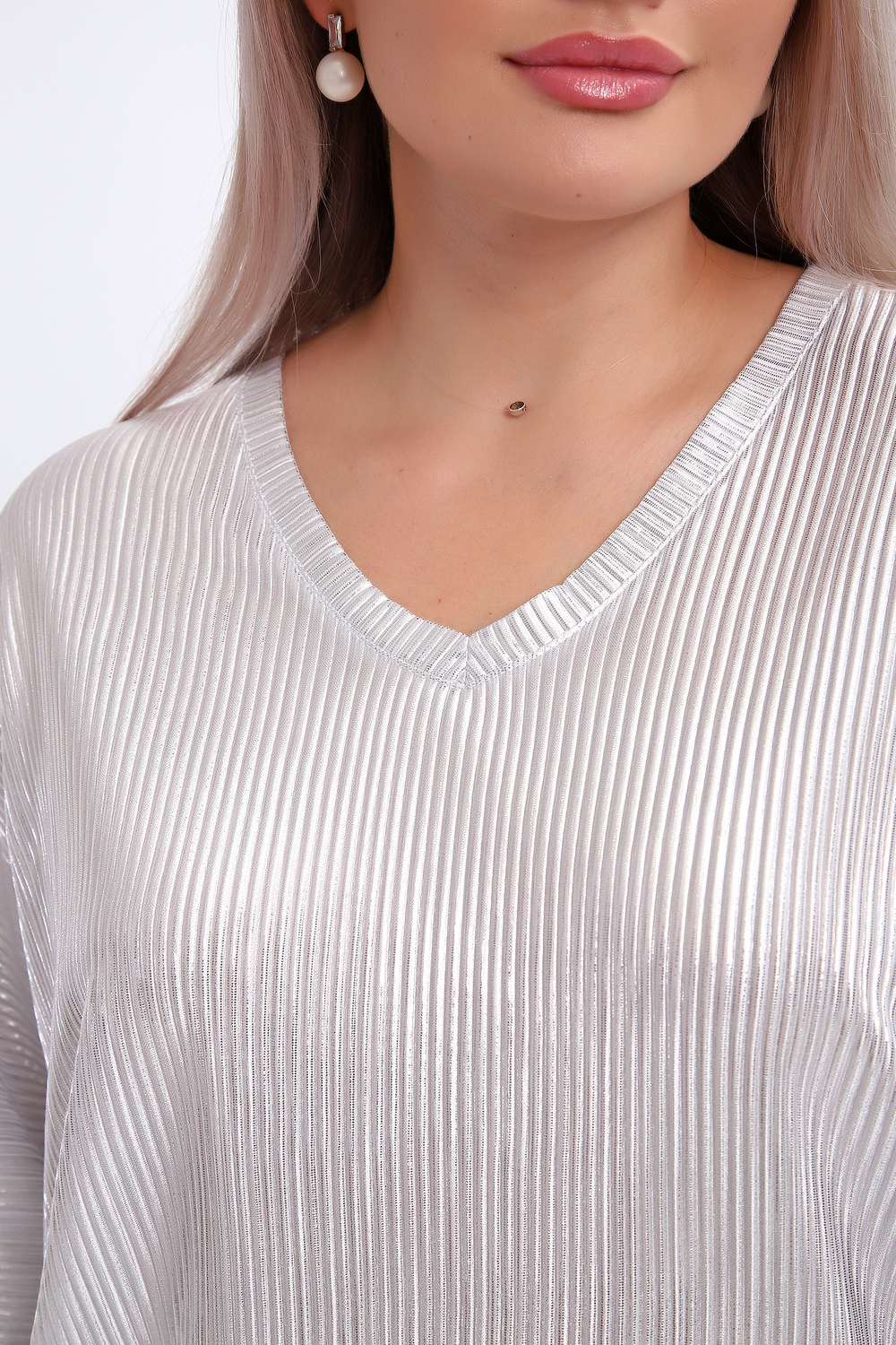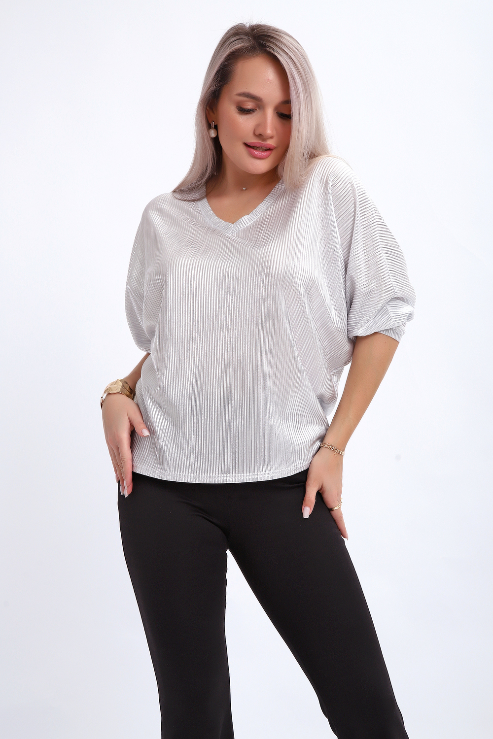Сделайте акцент на вашем стиле с помощью комфортной и изысканной блузки. Нарядная кофта - это необходимый предмет в любом гардеробе. Благодаря свободному крою, она идеально садится на любую фигуру, скрывая то, что хотелось бы спрятать и подчеркивая достоинства. Блузка выигрышно смотрится за счет ткани атлас гофре со стойким напылением фойл, которое не осыпается в процессе носки и после стирки. Ткань атлас гофре хорошо тянется и драпируется, имеет мягкий благородный блеск и совершенно не мнется. Крой блузки лаконичен, без лишних деталей, рукав "летучая мышь" не сковывает движений, имеет длину 3/4 и оканчивается небольшим манжетом. V-образный воротник зрительно удлиняет шею, обработан обтачкой, длина блузки до линии бедра. Легкая изящная блузка отлично впишется в вечерний наряд, а также будет блестящим дополнением к деловому и повседневному образу. В замерах длина рукава указана от горловины.