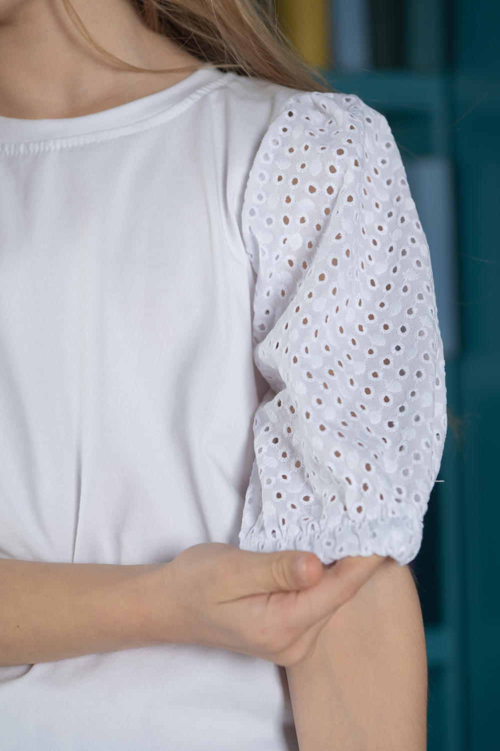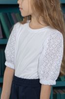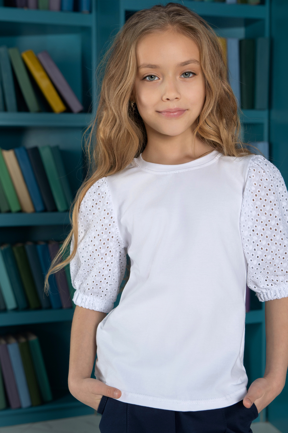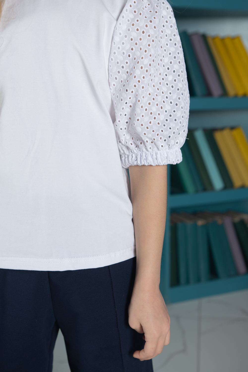 Элегантная школьная блузка для девочек с ажурными рукавами – стильное сочетание классики и нежности. Натуральный хлопок обеспечивает комфорт, а воздушные рукава добавляют образу изящности.