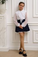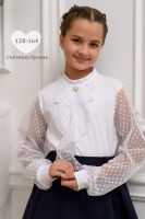 Блузка школьная для девочек с длинными рукавами из фатина. Красивый джемпер для девочек с жабо на каждый день.