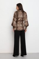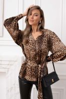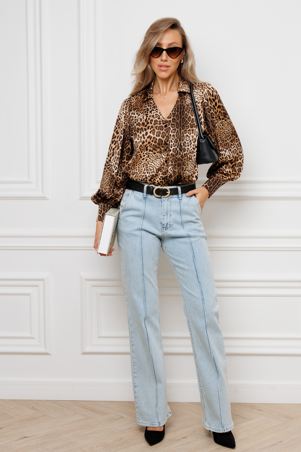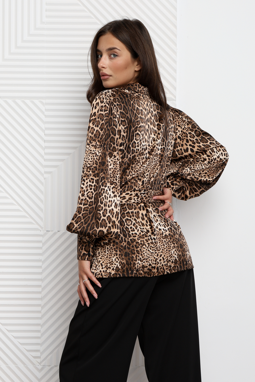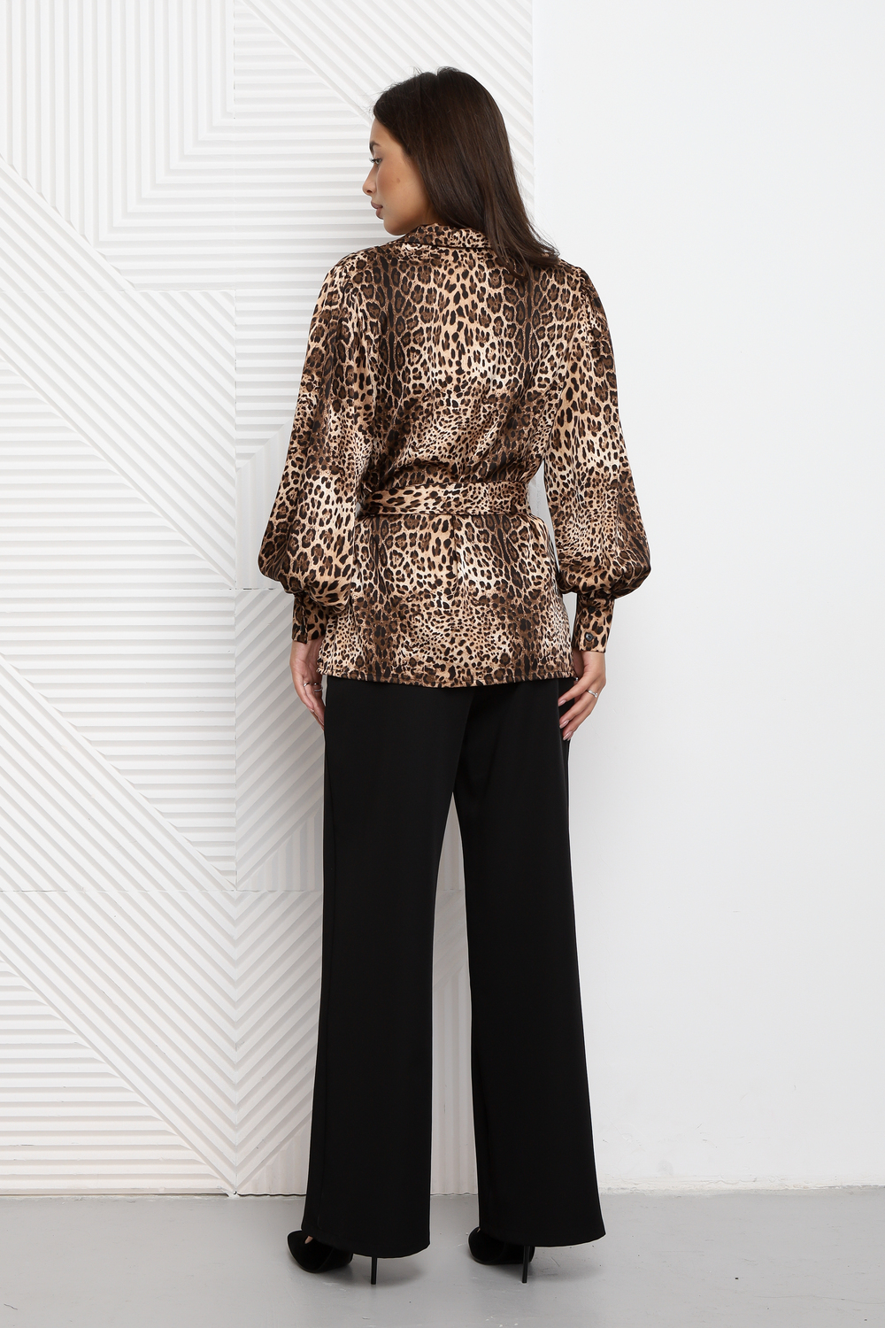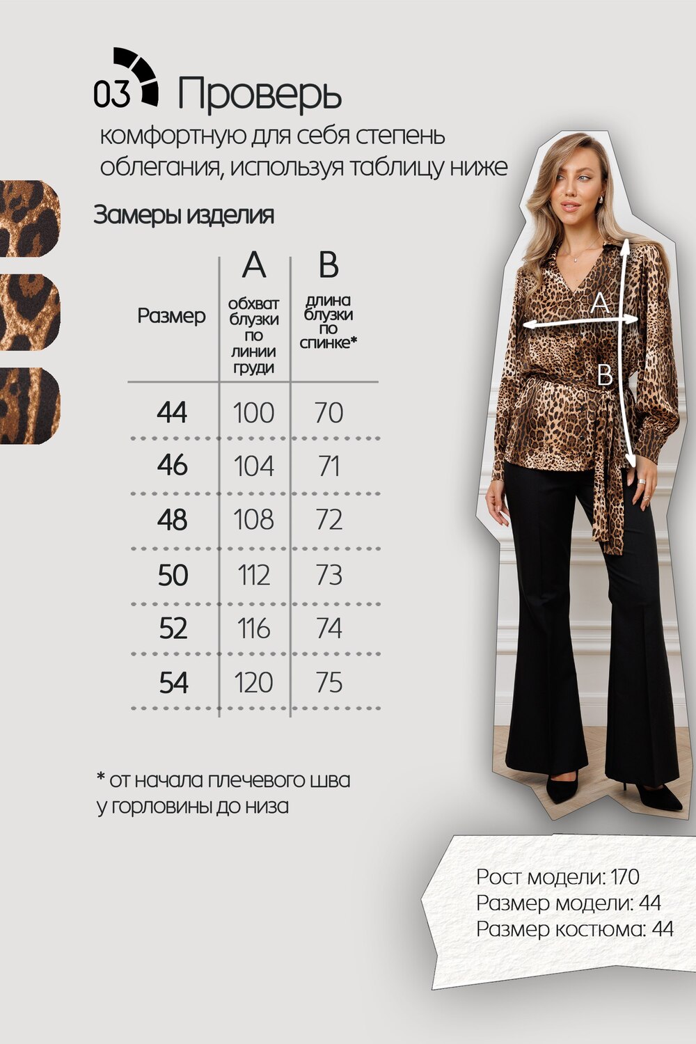 Блузка с поясом от российского производителя бренда женской одежды! Блуза прямого силуэта с V-образным вырезом, застегивается на пуговицы. Данная модель свободного кроя имеет леопардовый принт, в боковых швах имеются разрезы, пояс съемный. Рукав полной длины внизу имеет две складки, разрез и манжету, которая застегивается на две пуговицы. Необычное дизайнерское решение позволило совместить элегантную классику и эффектный стиль. Леопардовая рубашка женская станет отличным дополнением к любому гардеробу. Шелковая модель имеет в комплекте пояс, что подчеркивает талию и создает элегантный силуэт. Стильная блузка с поясом станет отличным выбором для женщин, стремящихся выглядеть нарядно и модно. Изготовленная из легкой атласной ткани, она обладает свободным кроем оверсайз, что обеспечивает комфорт в носке. Черный и белый цвета отлично подойдут как для праздничного мероприятия, так и для офисных встреч. Эта рубашка дополнена рукавами-фонариками, что придает образу романтичности и элегантности. Пояс позволяют регулировать силуэт, создавая акцент на талии. Также присутствует стильный леопардовый принт, который добавляет нотку дерзости в наряд. Блуза идеально подходит для школьной формы или делового стиля. Она станет универсальным элементом гардероба — ее можно сочетать с юбками или брюками, создавая разнообразные образы на лето и вечеринки. Праздничные выходы станут еще ярче с этой модной одеждой. Вам понравится удобство и легкость этой женской рубахи! Стройнящий силуэт позволит чувствовать себя уверенно и привлечет внимание окружающих. Нарядная блузка доступна в больших размерах плюс сайз - 50, 52 и 54, будет шикарно смотреться в любом возрасте, подойдет для полных девушек.