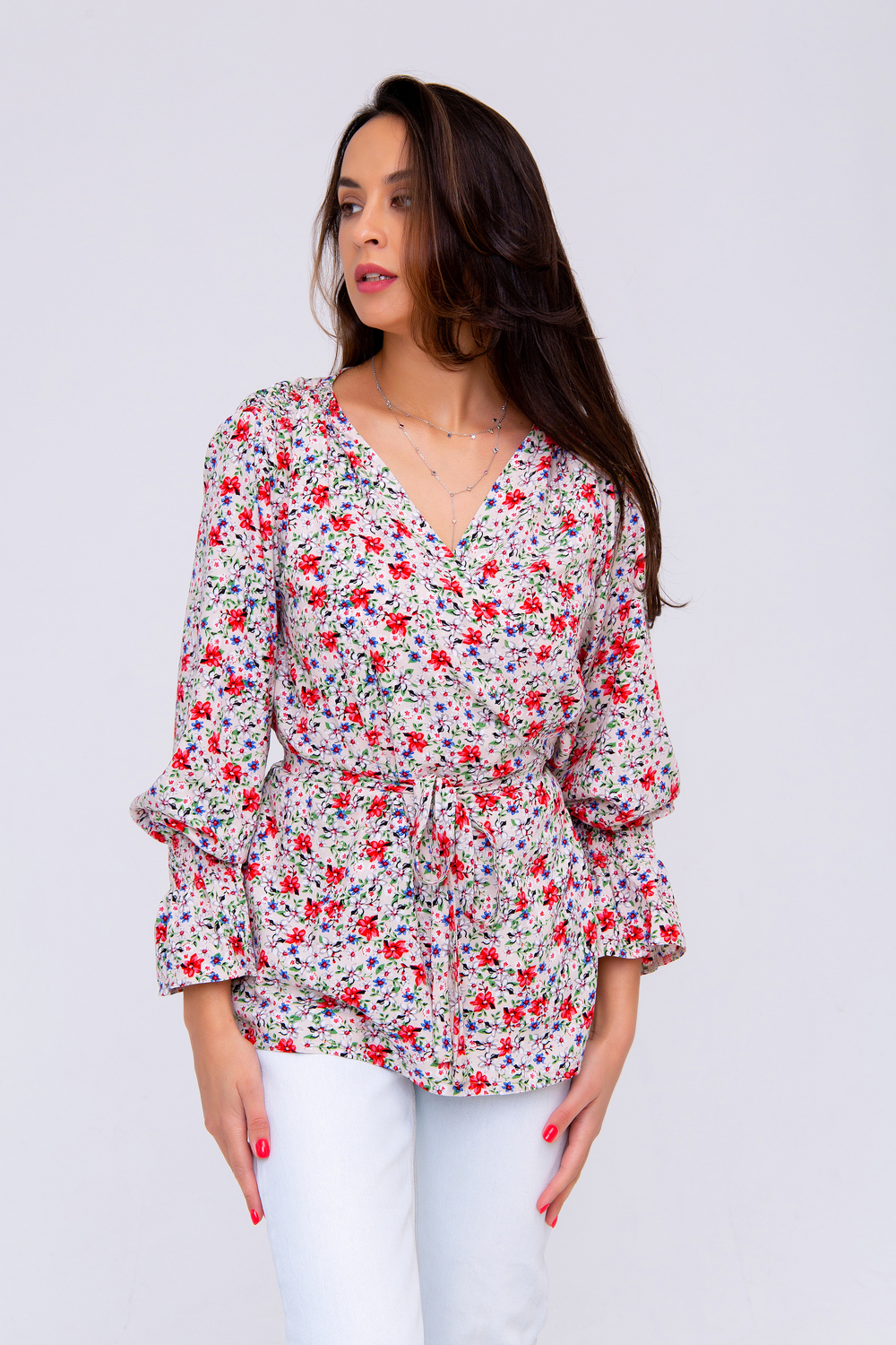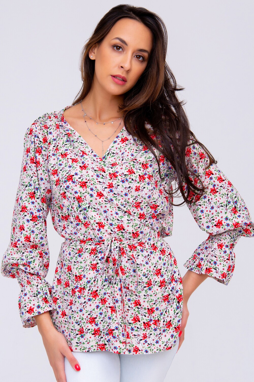 Блузка женская от бренда Raposa станет для вас настоящим открытием. Изделие выполнено в цветочной расцветке, которая придает ей особый шарм и неповторимость. Цветочный принт является одним из главных трендов в мире моды, поэтому вы точно будете в тренде. Этот принт идеально сочетается с нежными красками рубашки, добавляет ей неповторимый шарм и романтичность. Этот мотив оживляет кардиган, делая его идеальным выбором для тех, кто хочет выделиться из толпы. Пояс цветочной блузки регулируется завязкой, которая позволяет подчеркнуть талию и создать акцент на своих преимуществах. Этот элемент декора придаст изюминку вашему образу и сделает его незабываемым. V-образный вырез – еще одна изюминка модной блузки. Этот вырез придаст шарма и утонченности вашей фигуре, идеально подчеркнув вашу грудь и шею. Благодаря такому вырезу, вы будете выглядеть очаровательно и сексуально, приковывая взгляды окружающих. Рукава вечерней блузки декорированы манжетами, что добавляет элегантности и законченности всему образу. Такой элемент декора делает руки визуально более стройными, а изделие – более гармоничной и завершенной. Ассортимент включает блузки больших размеров. Независимо от того, куда вы ее наденете – на свидание, на новый год или на работу, она всегда будет выглядеть безупречно. Вечерняя блузка от Raposa – это лучший выбор для смелых и стильных женщин, которые хотят выделиться из толпы и создать впечатление. Она станет вашим незаменимым помощником при создании удачных и модных образов. Не упустите шанс приобрести эту восхитительную штапельную блузку и стать центром внимания на любом мероприятии. Блузка нарядная от Raposa – это лучший выбор для стильных и модных женщин, которые следят за последними тенденциями моды.