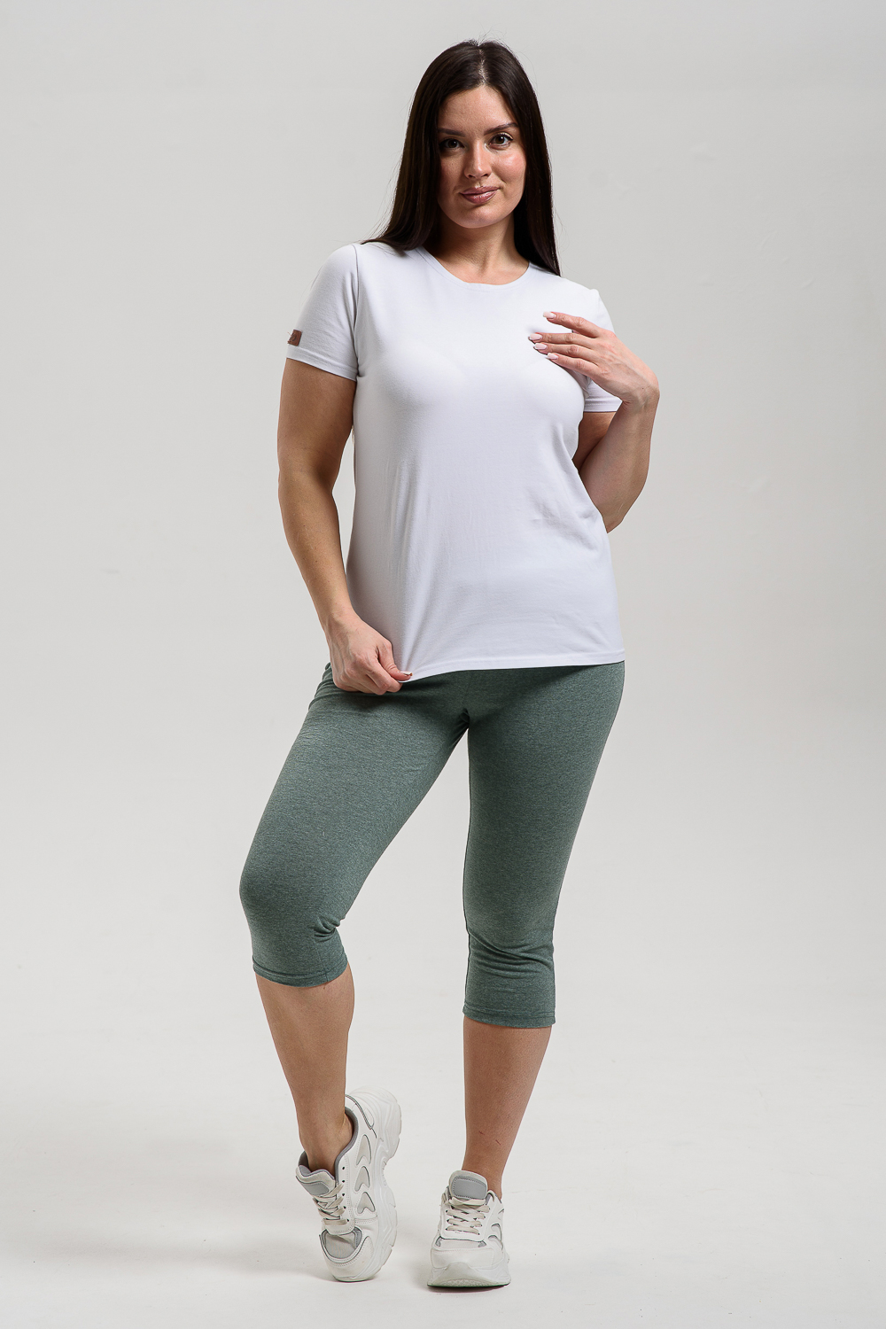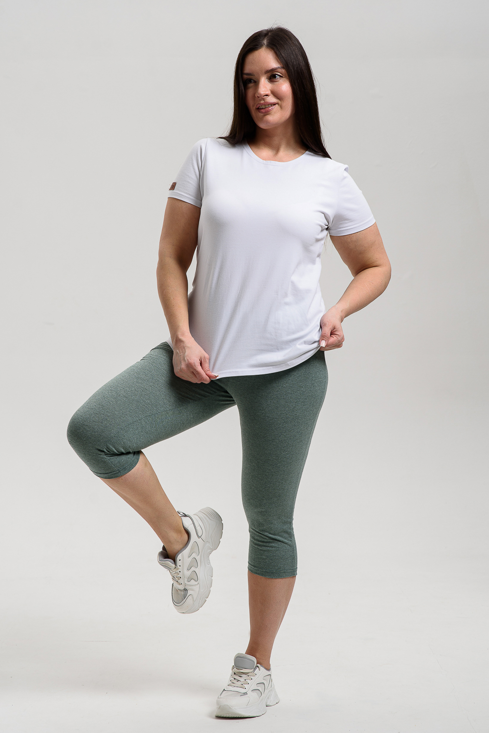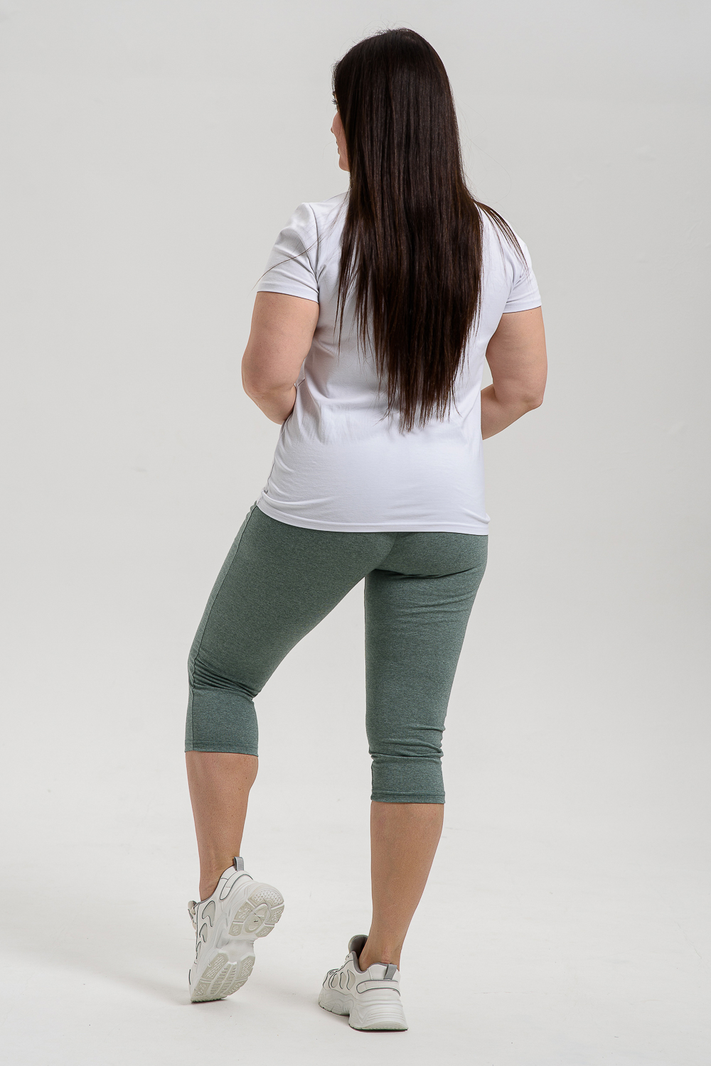 Бриджи женские на резинке, длиной ниже колена, эластичные, облегающие.