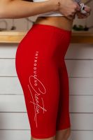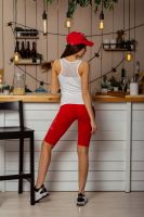 Бриджи-велосипедки облегающие, длинной выше колена, сверху на резинке. Вдоль боковых швов расположены лампасы с принтом. Можно составить комплект с майкой 8238