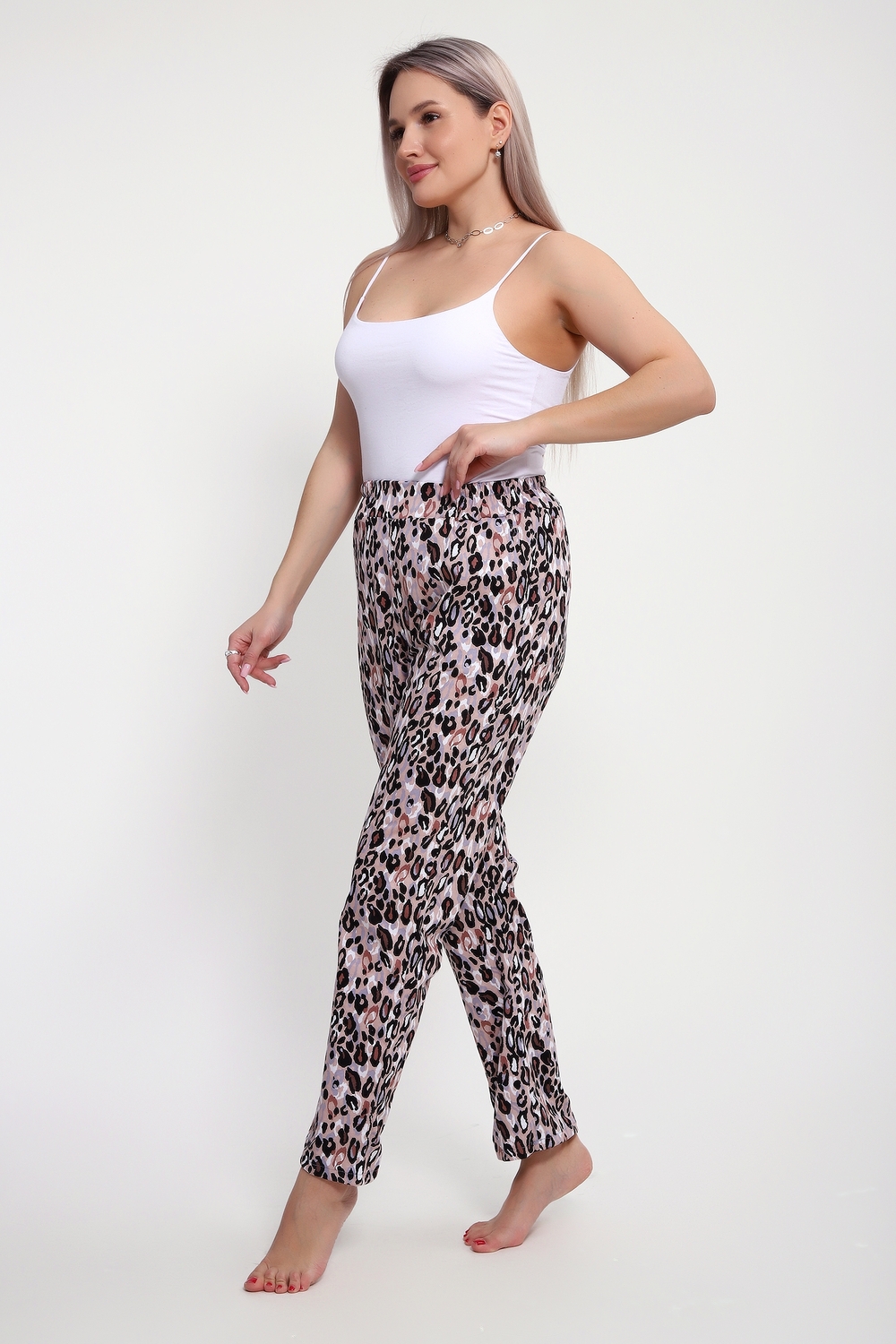 Брюки женские выполнены из кулирки 100% хлопок. Брюки имеют комфортную посадку, на поясе с резинкой, с карманами, прямые. Идеально подойдут как для дома, так и для прогулок и отдыха.