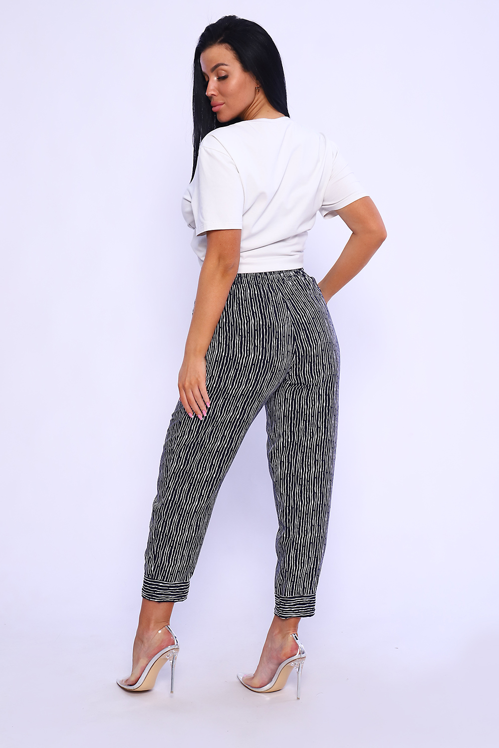 Незаменимая вещь на лето - легкие брюки из штапеля. Свободный крой, пояс на резине обеспечивают комфорт и свободу движения. Вискозная ткань штапель обладает отличной воздухопроницаемостью, гигроскопичностью, ткань очень приятна к телу. Брюки длиной 7/8 , внизу манжет, подвернутый наверх, отогнув его, можно увеличить длину брюк. По бокам внутренние карманы. В замерах обхват талии соответствует длине резинки в растянутом виде. Рост модели на фото - 167см.