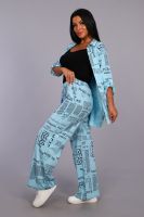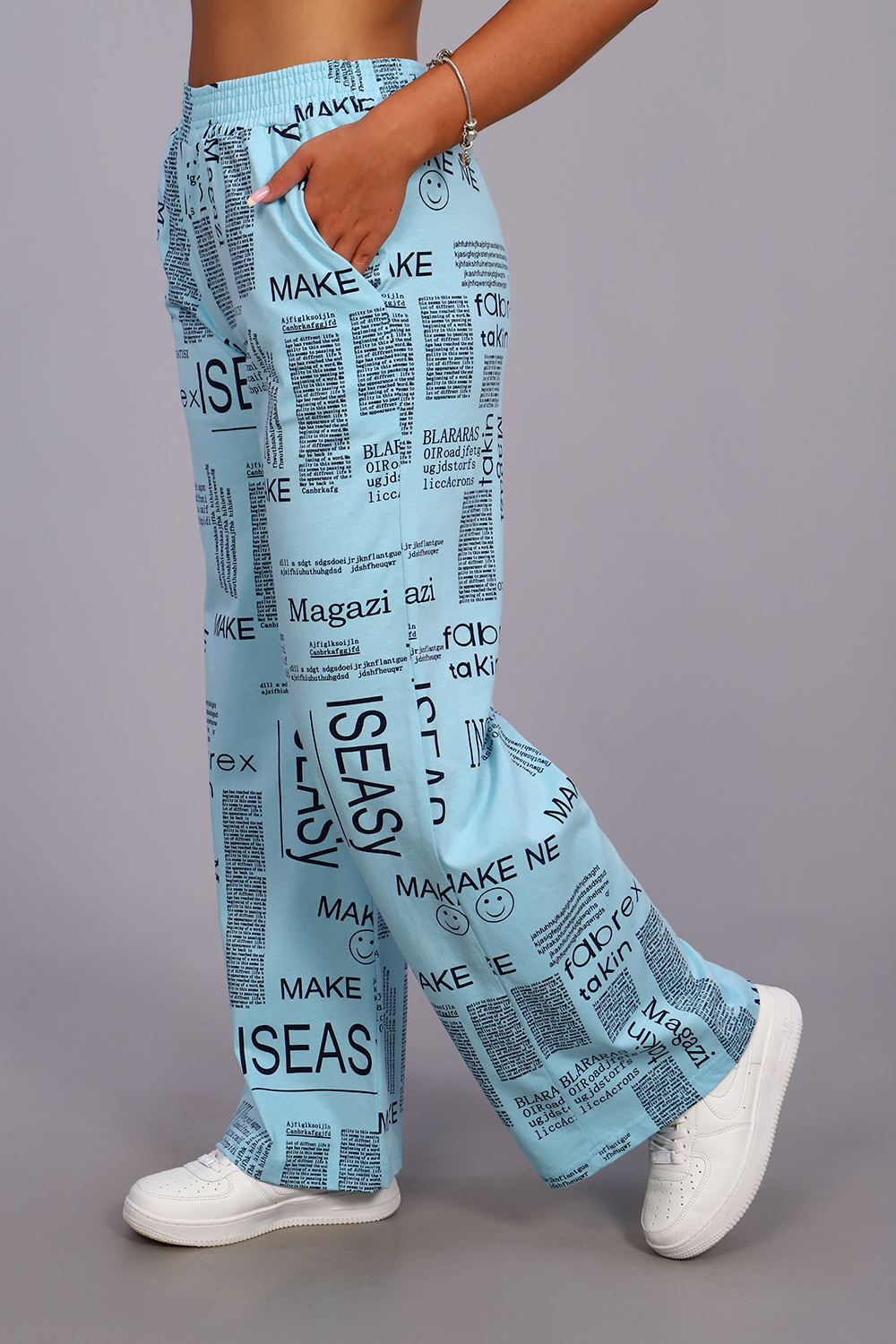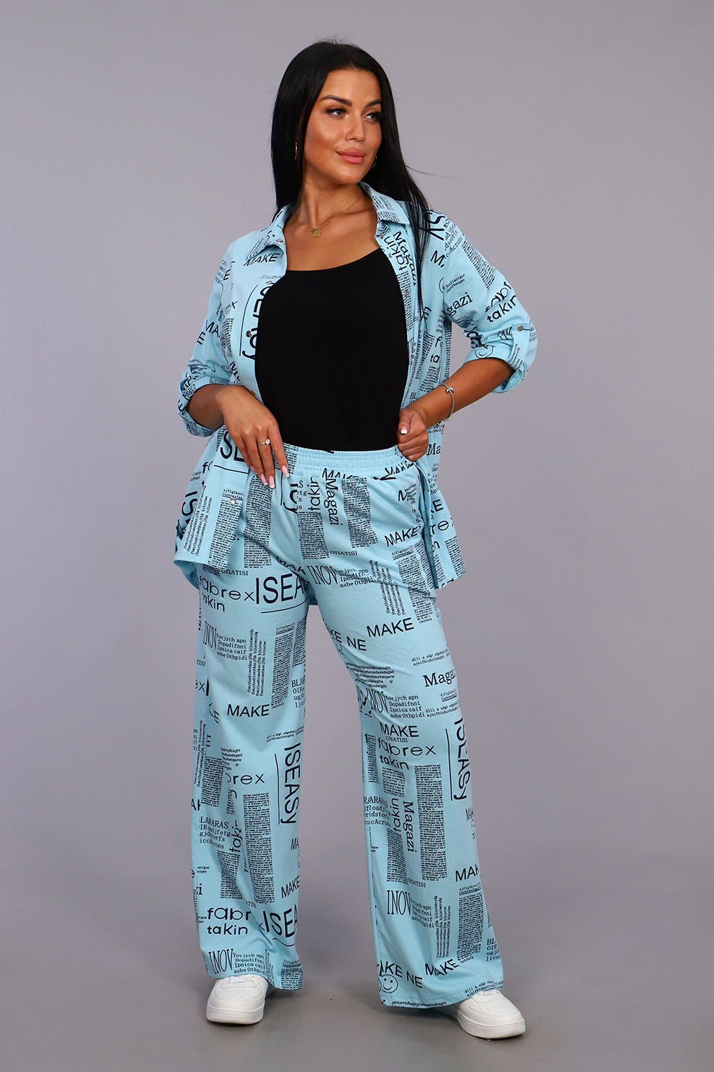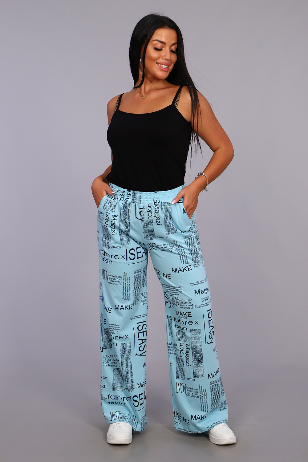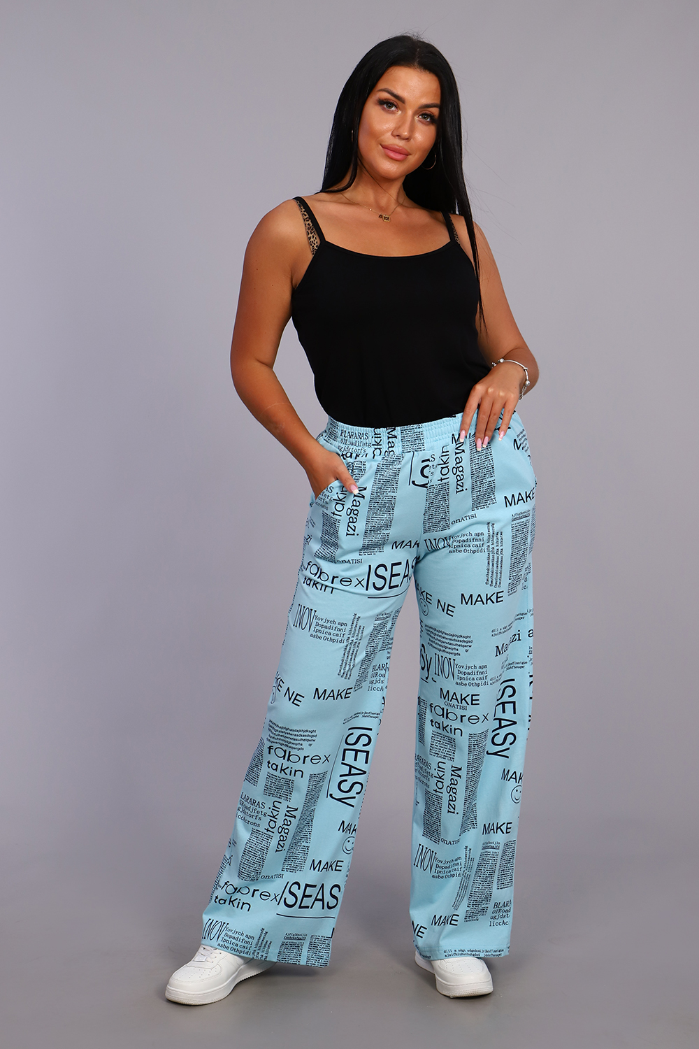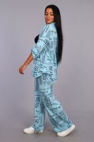 Женские модные брюки - палаццо выполнены из 100% хлопчатобумажного полотна двойного крашения. Ткань в результате такого окрашивания получает более высокие прочностные характеристики, не меняя текстильных качеств. Высокая посадка, вместительные боковые карманы и качественно обработанный на специальной машине пояс, всё это делает модель более комфортной. Брюки такого плана это идеальный вариант, чтобы скрыть все недостатки и подчеркнуть женственность фигуры. А еще для создания целостного образа Вы можете приобрести к ним тунику рубашечного плана № 36544.