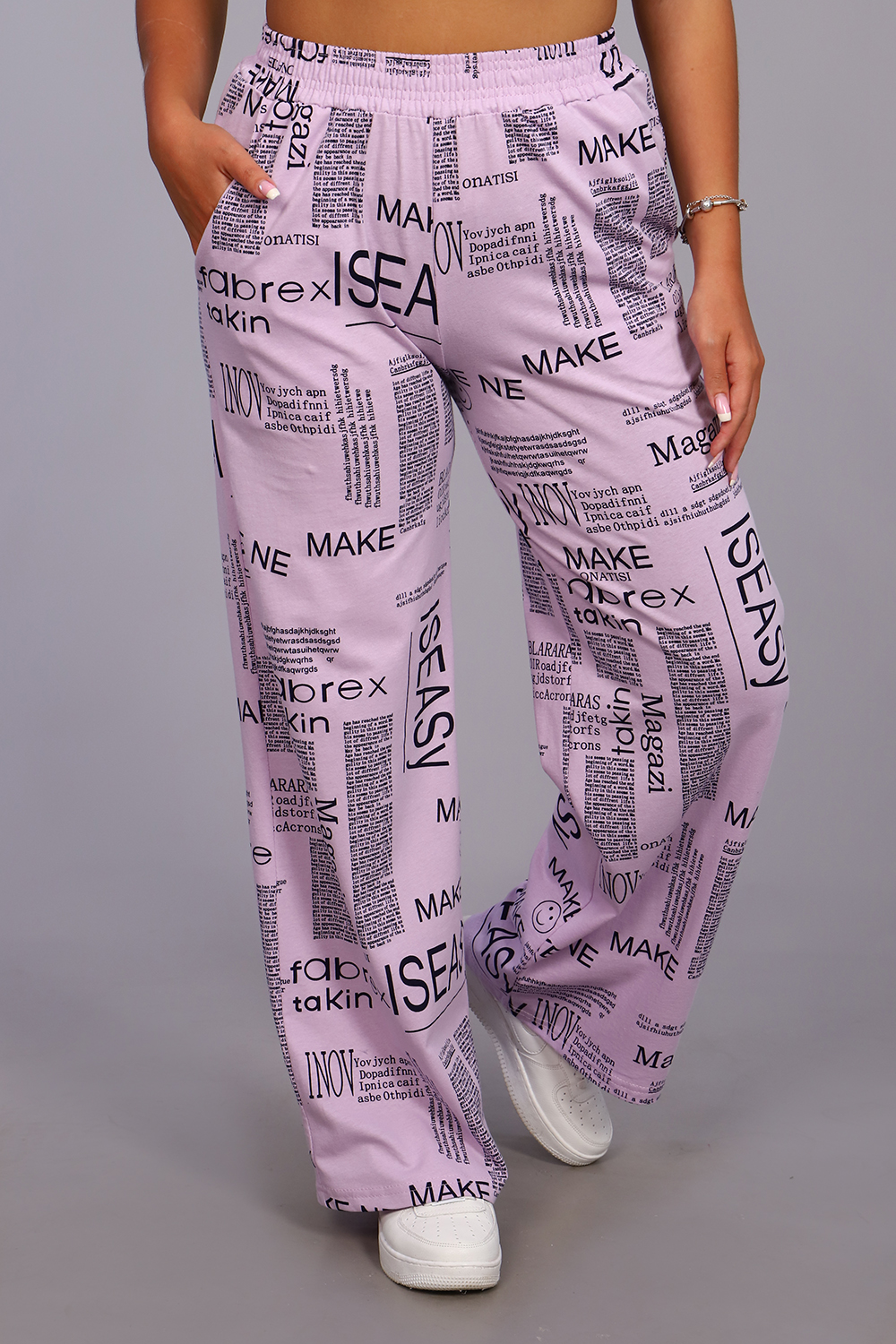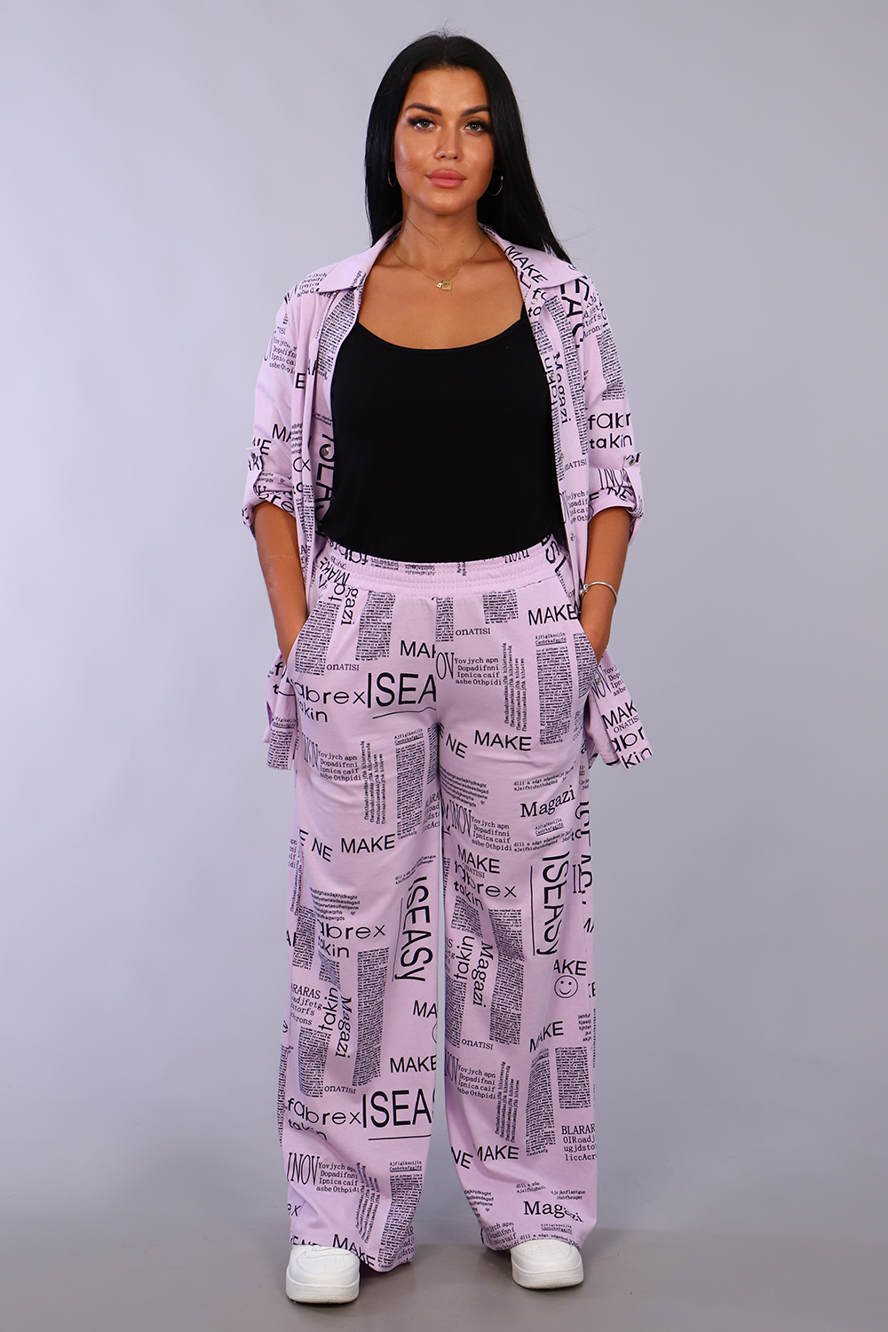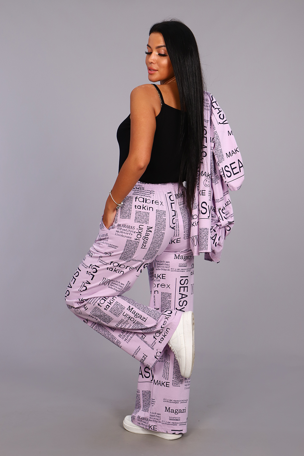 Женские модные брюки - палаццо выполнены из 100% хлопчатобумажного полотна двойного крашения. Ткань в результате такого окрашивания получает более высокие прочностные характеристики, не меняя текстильных качеств. Высокая посадка, вместительные боковые карманы и качественно обработанный на специальной машине пояс, всё это делает модель более комфортной. Брюки такого плана это идеальный вариант, чтобы скрыть все недостатки и подчеркнуть женственность фигуры. А еще для создания целостного образа Вы можете приобрести к ним тунику рубашечного плана № 36544.