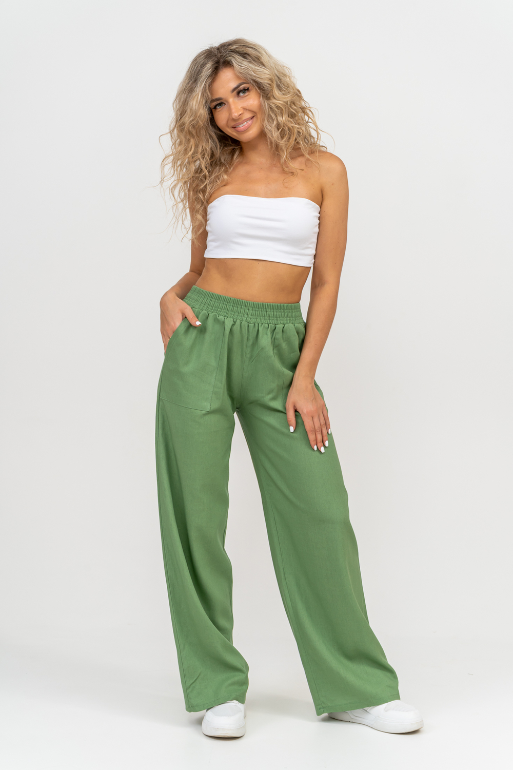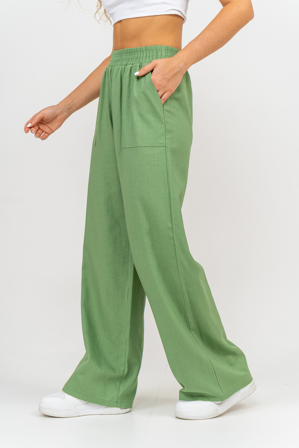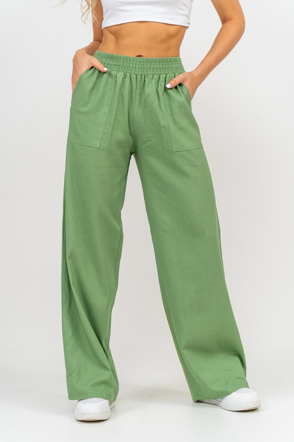 Стильные и современные женские летние брюки - палаццо выполнены из прочного, износостойкого, долговечного и приятного к телу материала. Это экологичный материал, обладающий отличной гигроскопичностью и воздухопроницаемостью. Одежда из ткани, в состав которой входит лён, способствует естественной терморегуляции тела и отлично подходит для летнего сезона и жаркого климата. Спереди брюк настрочены два вместительных накладных кармана. Пояс выполнен на специализированной поясной машине. Это качественная и современная обработка, при которой Ваш пояс не деформируется со временем, при стирке и не даёт резинке скрутиться. Льняные брюки - это универсальная вещь, они подойдут для работы в офисе, для школы, прогулок, на праздник или для дома. Особый шарм брюки приобретают во время отпуска, отдыха на море, на курорте или пляже. Брюки - палаццо с завышенной посадкой красиво подчеркивают талию и линию бедра, создавая лаконичный и стильный образ. Брюки такого плана подходят под разные стили - casual, спортивный, неформальный, пляжный морской, бохо и конечно более строгие варианты - классика, деловой офисный стиль. Длинные брюки на резинке - идеальный вариант для современной женщины, которая много времени проводит на работе. Базовая популярная модель позволяет чувствовать себя удобно и комфортно в течении всего рабочего дня. Лёгкие и свободные брюки с карманами из премиум ткани отлично подходят для жаркого лета, пляжа, вечеринки, танцев или домашнего отдыха. Элегантные брюки помогут создать красивые вечерние образы, а также помогут выглядеть эффектно на праздничной фотосессии или выпускном.