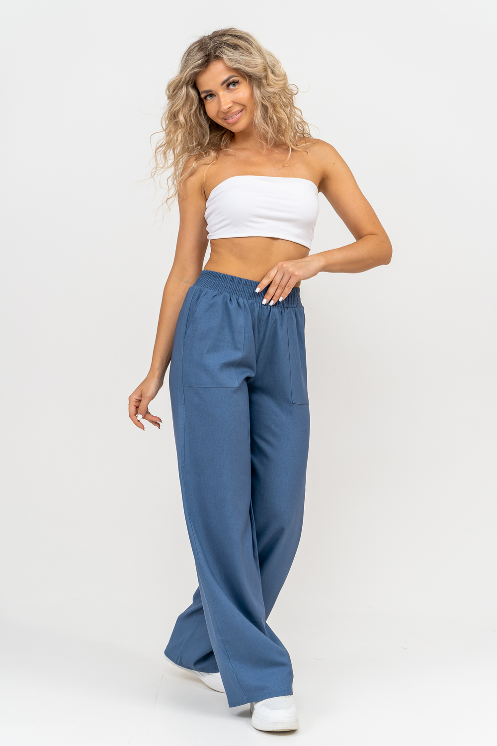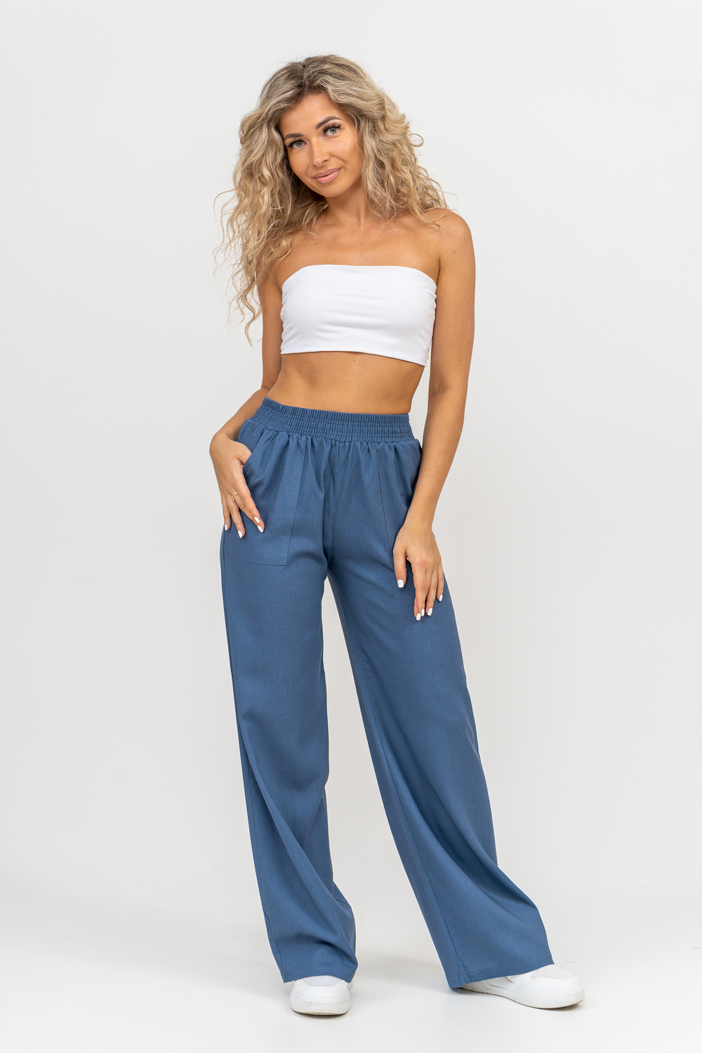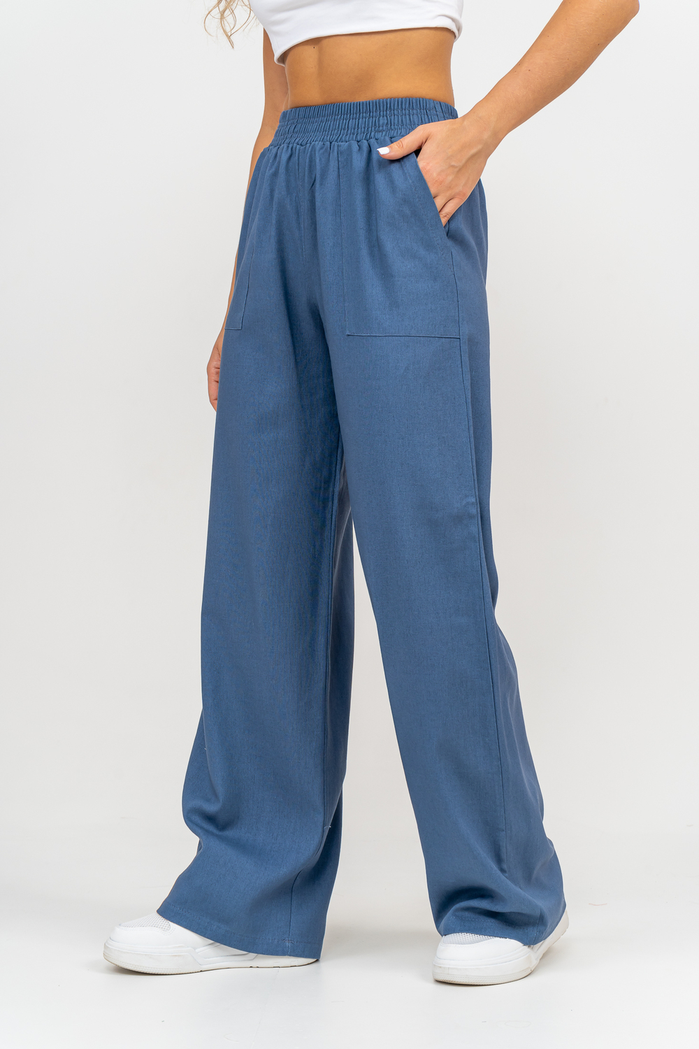Стильные и современные женские летние брюки - палаццо выполнены из прочного, износостойкого, долговечного и приятного к телу материала. Это экологичный материал, обладающий отличной гигроскопичностью и воздухопроницаемостью. Одежда из ткани, в состав которой входит лён, способствует естественной терморегуляции тела и отлично подходит для летнего сезона и жаркого климата. Спереди брюк настрочены два вместительных накладных кармана. Пояс выполнен на специализированной поясной машине. Это качественная и современная обработка, при которой Ваш пояс не деформируется со временем, при стирке и не даёт резинке скрутиться. Льняные брюки - это универсальная вещь, они подойдут для работы в офисе, для школы, прогулок, на праздник или для дома. Особый шарм брюки приобретают во время отпуска, отдыха на море, на курорте или пляже. Брюки - палаццо с завышенной посадкой красиво подчеркивают талию и линию бедра, создавая лаконичный и стильный образ. Брюки такого плана подходят под разные стили - casual, спортивный, неформальный, пляжный морской, бохо и конечно более строгие варианты - классика, деловой офисный стиль. Длинные брюки на резинке - идеальный вариант для современной женщины, которая много времени проводит на работе. Базовая популярная модель позволяет чувствовать себя удобно и комфортно в течении всего рабочего дня. Лёгкие и свободные брюки с карманами из премиум ткани отлично подходят для жаркого лета, пляжа, вечеринки, танцев или домашнего отдыха. Элегантные брюки помогут создать красивые вечерние образы, а также помогут выглядеть эффектно на праздничной фотосессии или выпускном.