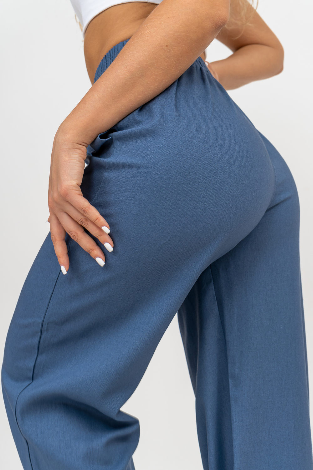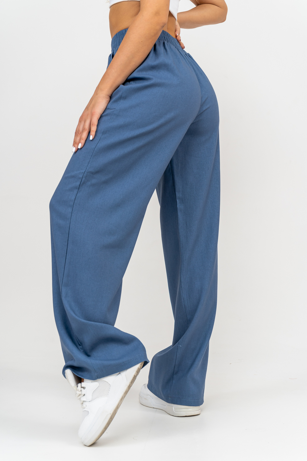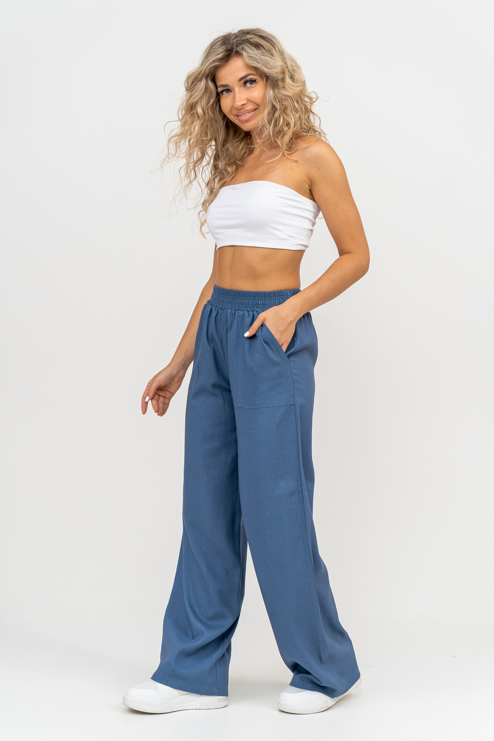 Стильные и современные женские летние брюки - палаццо выполнены из прочного, износостойкого, долговечного и приятного к телу материала. Это экологичный материал, обладающий отличной гигроскопичностью и воздухопроницаемостью. Одежда из ткани, в состав которой входит лён, способствует естественной терморегуляции тела и отлично подходит для летнего сезона и жаркого климата. Спереди брюк настрочены два вместительных накладных кармана. Пояс выполнен на специализированной поясной машине. Это качественная и современная обработка, при которой Ваш пояс не деформируется со временем, при стирке и не даёт резинке скрутиться. Льняные брюки - это универсальная вещь, они подойдут для работы в офисе, для школы, прогулок, на праздник или для дома. Особый шарм брюки приобретают во время отпуска, отдыха на море, на курорте или пляже. Брюки - палаццо с завышенной посадкой красиво подчеркивают талию и линию бедра, создавая лаконичный и стильный образ. Брюки такого плана подходят под разные стили - casual, спортивный, неформальный, пляжный морской, бохо и конечно более строгие варианты - классика, деловой офисный стиль. Длинные брюки на резинке - идеальный вариант для современной женщины, которая много времени проводит на работе. Базовая популярная модель позволяет чувствовать себя удобно и комфортно в течении всего рабочего дня. Лёгкие и свободные брюки с карманами из премиум ткани отлично подходят для жаркого лета, пляжа, вечеринки, танцев или домашнего отдыха. Элегантные брюки помогут создать красивые вечерние образы, а также помогут выглядеть эффектно на праздничной фотосессии или выпускном.