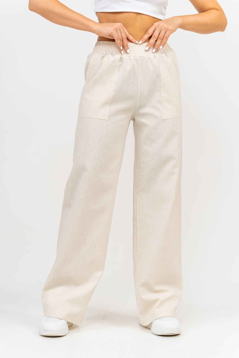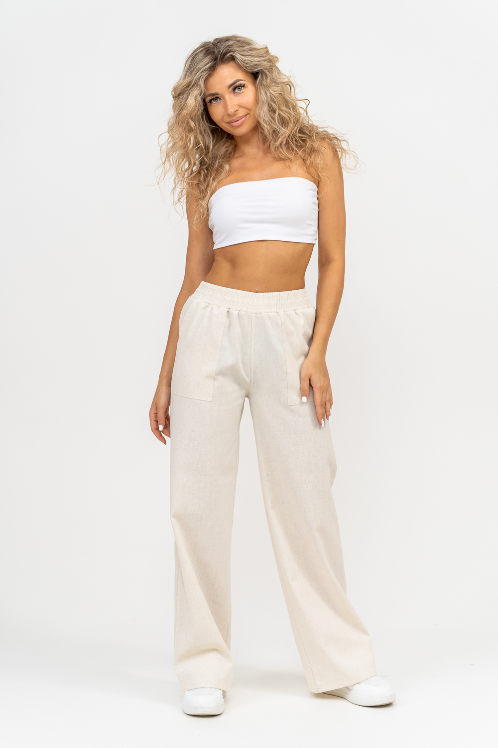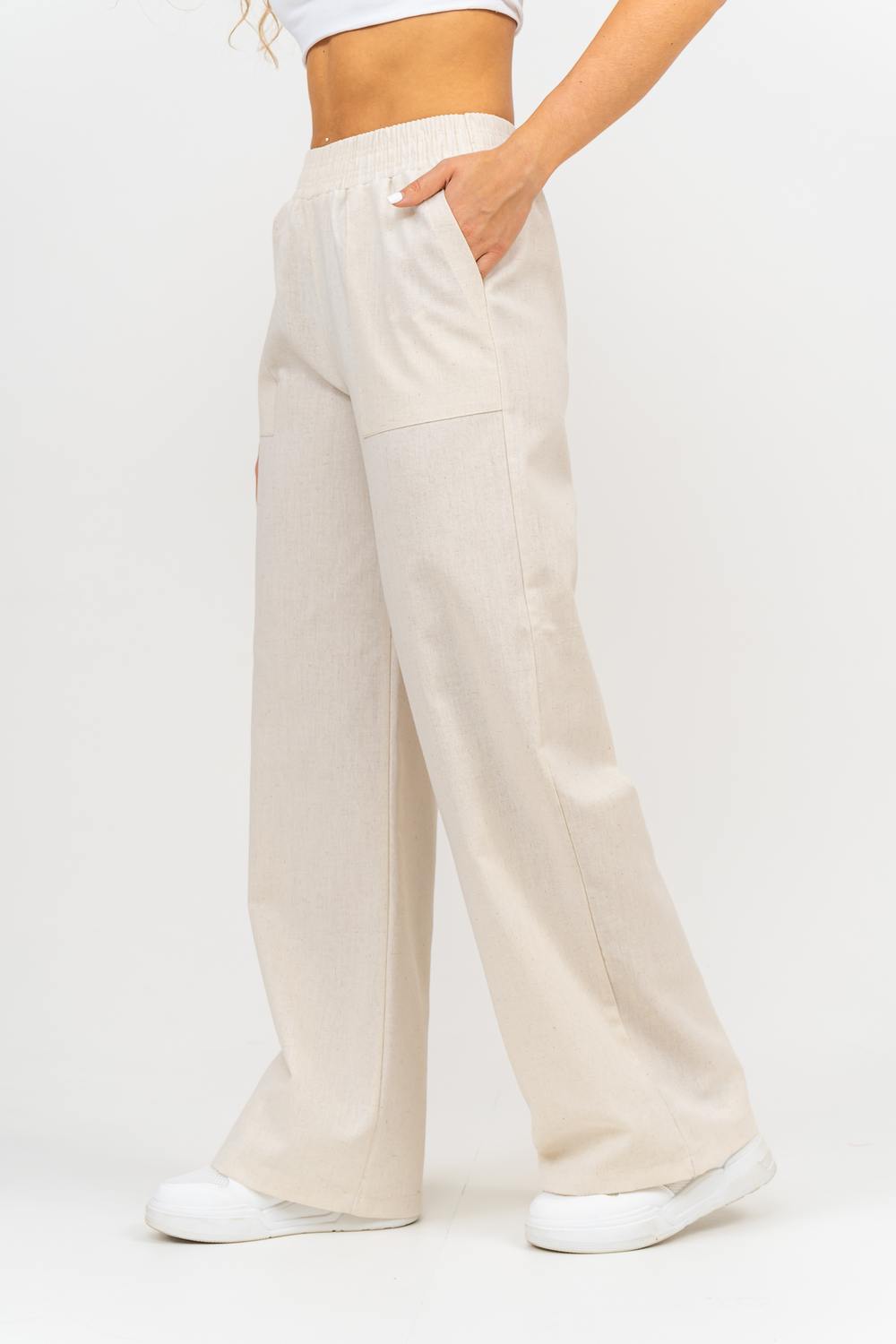 Стильные и современные женские летние брюки - палаццо выполнены из прочного, износостойкого, долговечного и приятного к телу материала. Это экологичный материал, обладающий отличной гигроскопичностью и воздухопроницаемостью. Одежда из ткани, в состав которой входит лён, способствует естественной терморегуляции тела и отлично подходит для летнего сезона и жаркого климата. Спереди брюк настрочены два вместительных накладных кармана. Пояс выполнен на специализированной поясной машине. Это качественная и современная обработка, при которой Ваш пояс не деформируется со временем, при стирке и не даёт резинке скрутиться. Льняные брюки - это универсальная вещь, они подойдут для работы в офисе, для школы, прогулок, на праздник или для дома. Особый шарм брюки приобретают во время отпуска, отдыха на море, на курорте или пляже. Брюки - палаццо с завышенной посадкой красиво подчеркивают талию и линию бедра, создавая лаконичный и стильный образ. Брюки такого плана подходят под разные стили - casual, спортивный, неформальный, пляжный морской, бохо и конечно более строгие варианты - классика, деловой офисный стиль. Длинные брюки на резинке - идеальный вариант для современной женщины, которая много времени проводит на работе. Базовая популярная модель позволяет чувствовать себя удобно и комфортно в течении всего рабочего дня. Лёгкие и свободные брюки с карманами из премиум ткани отлично подходят для жаркого лета, пляжа, вечеринки, танцев или домашнего отдыха. Элегантные брюки помогут создать красивые вечерние образы, а также помогут выглядеть эффектно на праздничной фотосессии или выпускном.