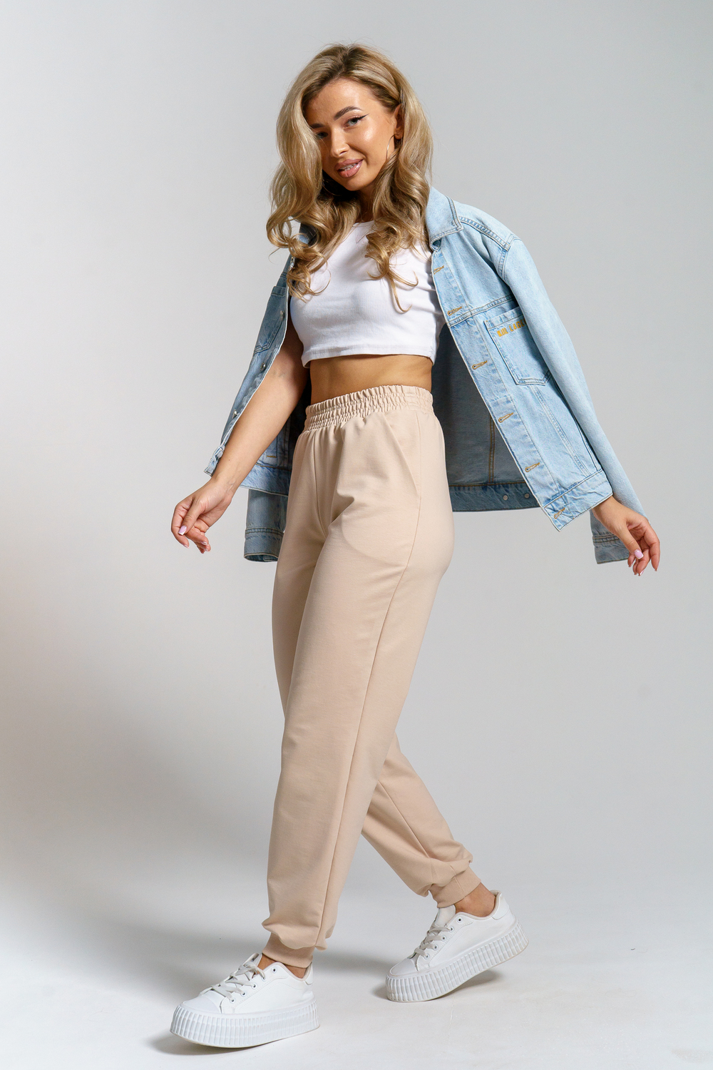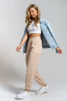 Женские брюки уже давно отличаются не только стилем и красотой, но и комфортом. Удобные не сковывающие движения элементы позволяют создавать модные образы. И это та самая модель - брюки джоггеры из футера 2-х нитки с высокой линией талии, которые идеально сядут на любой тип фигуры. Брюки такого плана заняли достойную позицию в гардеробе модниц благодаря своему оригинальному, и в то же время удобному крою. Внешний вид представляет собой свободные брюки сужающиеся к низу. Их отличительной чертой является пояс-резинка, обработанный на специализированной машине, и эластичные манжеты по низу брюк. Так же у модели имеются боковые карманы, в которых помещается всё самое необходимое. Удобство таких брюк неоспоримо, ведь резинка не пережимает тело и предоставляет свободу движений. В повседневной жизни за счёт своей универсальности брюки подойдут на любой повод - на работу, в школу, на прогулку, на тренировку... С брюками такого плана можно создавать спортивные образы и образы в направлении casual. Длинные майки, широкие свитера, другие элементы одежды oversize прекрасно дополнят эту модель. Не бойтесь добавлять аксессуары, они способны изменить образ до неузнаваемости и сделать брюки такого плана любимой вещью Вашего гардероба на любой случай жизни!
