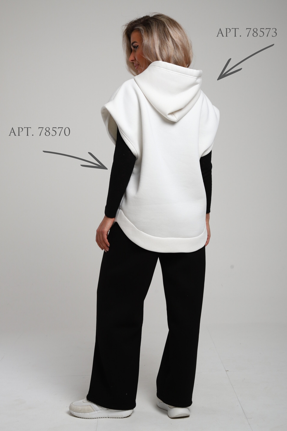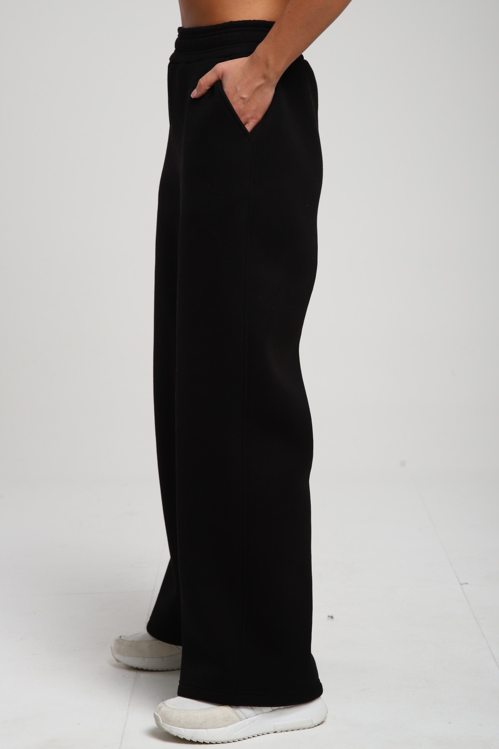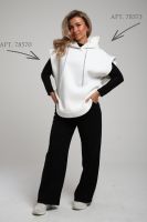 Женские широкие брюки, прямого силуэта, с притачным поясом внутрь которого вставлена эластичная резинка шириной 5см. Передние половинки с карманами. Боковые швы со смещением на перед к низу. По среднему шву передних и задних половинок расположена отстройка. Низ брюк подогнут. Брюки сшиты из футера 3-х нитки с начесом. Данная модель отлично сочетается с жилетом под номером 78573 и лонгсливом, образуя монохромный комплект на ваш вкус. А актуальность представленных брюк позволит вам подобрать к ним самые уютные и теплые образы в холодное время года. Материал устойчив к истиранию, выцветанию, сминаемости за счет этого, вы всегда будете иметь аккуратный и ухоженный вид, так же не будет вытягиваться в коленях и локтях. При первых носках ворс может скатываться и оставаться на белье, это проходит после 1-2 стирки. На фото модель представлена в 48 размере.
