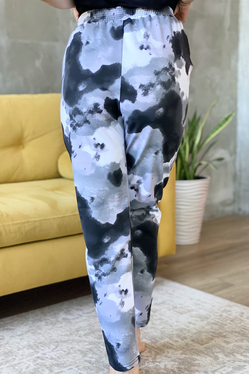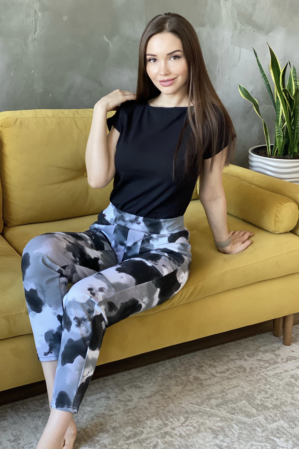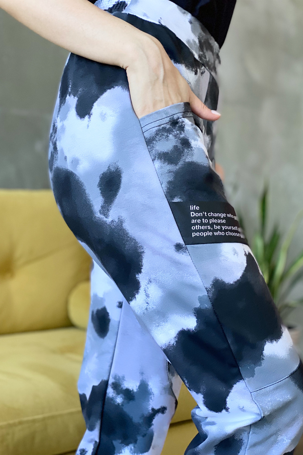 Брюки на поясе, свободные, с накладными карманами.