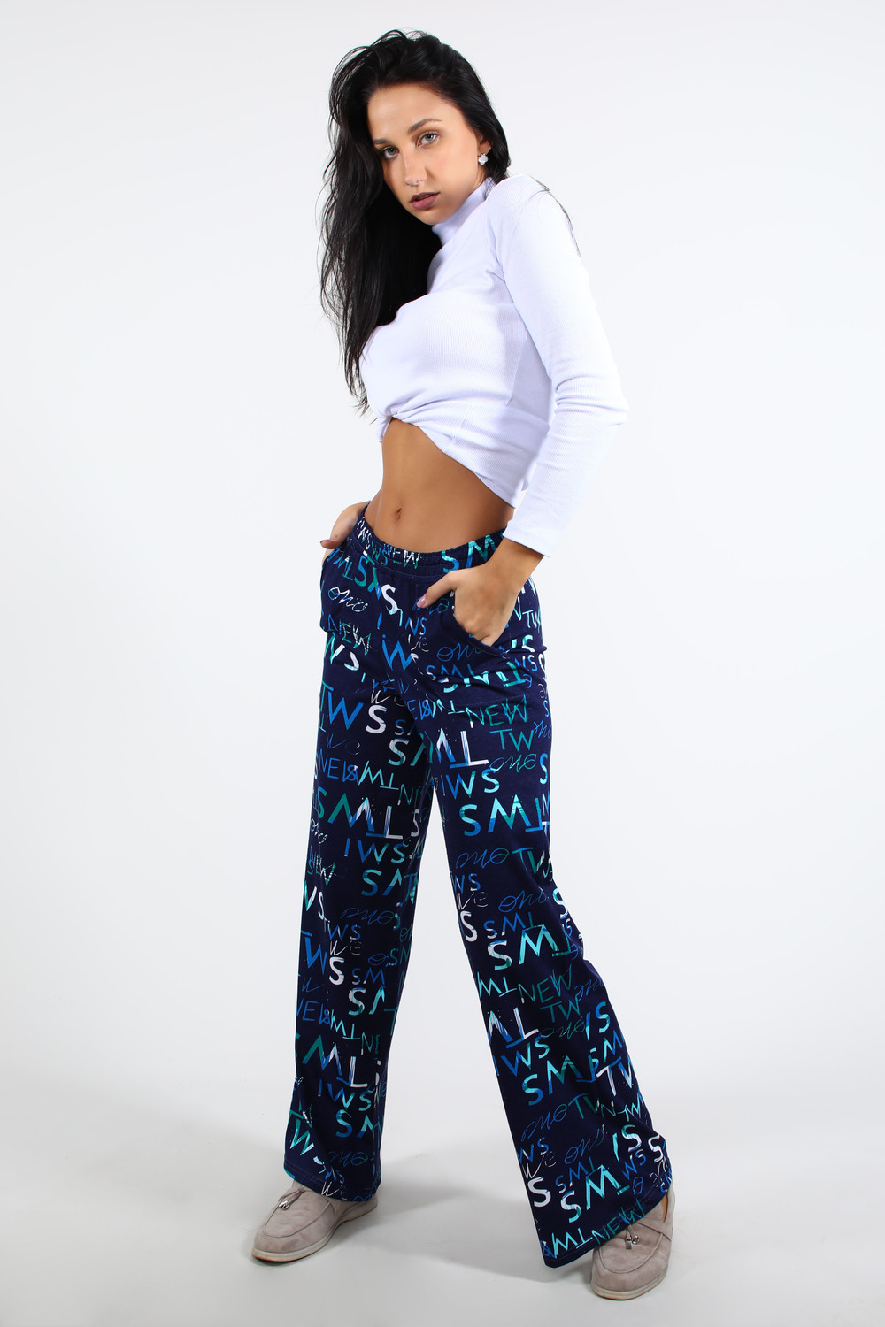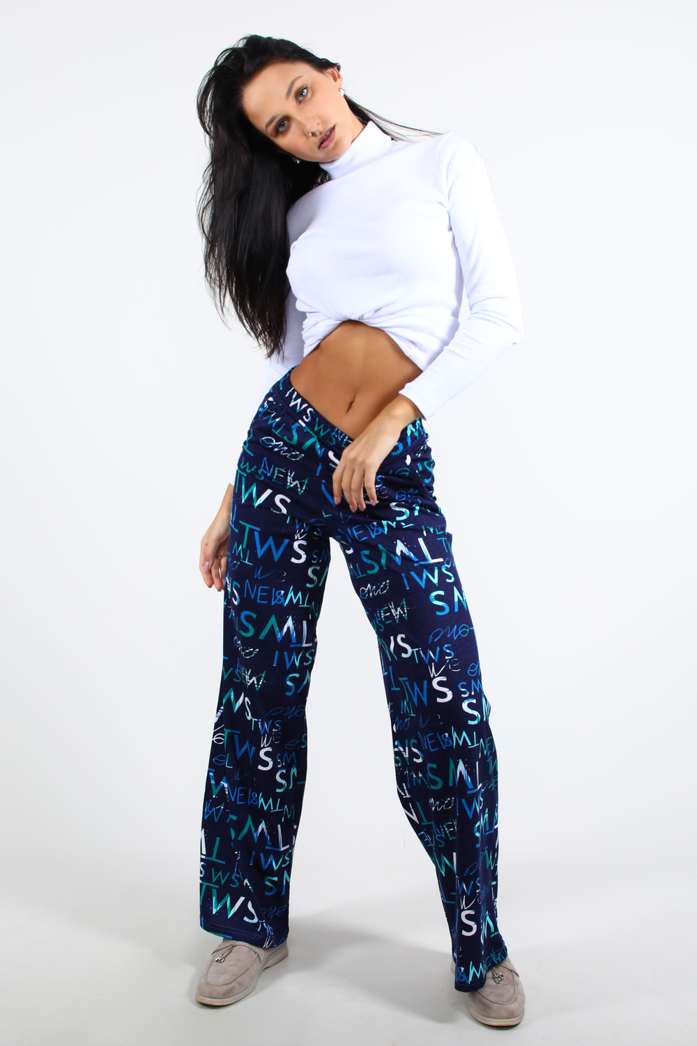 Брюки женские широкие, свободного покроя с поясом 4см. Данная модель выполнена из эластичного трикотажного полотна кулирка. На поясе присутствуют три декоративные строчки. Отлично подходят для прогулок и повседневной носки.