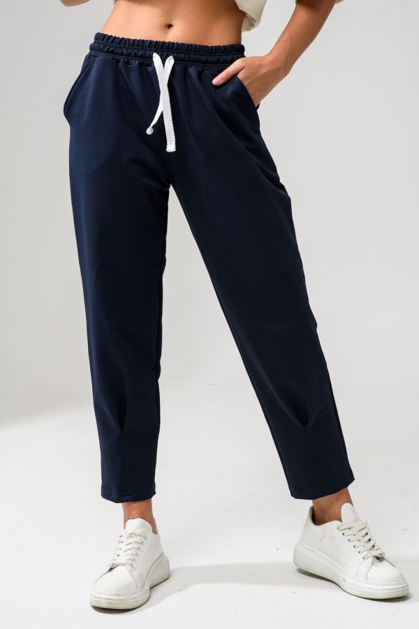 Брюки женские, "бананы", внизу передней и задней части по две встречные складки, манжеты. В брюках удобные внутренние карманы, пояс выполнен на многоигольной машине.