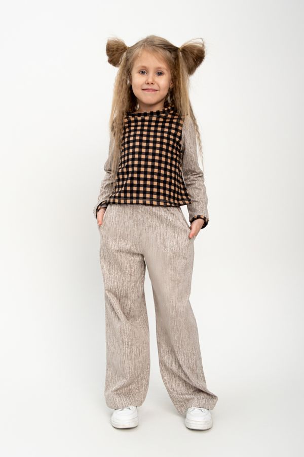 Брюки выполнены из кулирки. Это поможет вашему ребенку выглядеть стильно и в то же время не забывать о комфорте. Свободный крой исключит скованность из движений, а качество пошива оставит приятные воспоминания. Брюки можно сочетать как со свитшотами, так и с футболками.