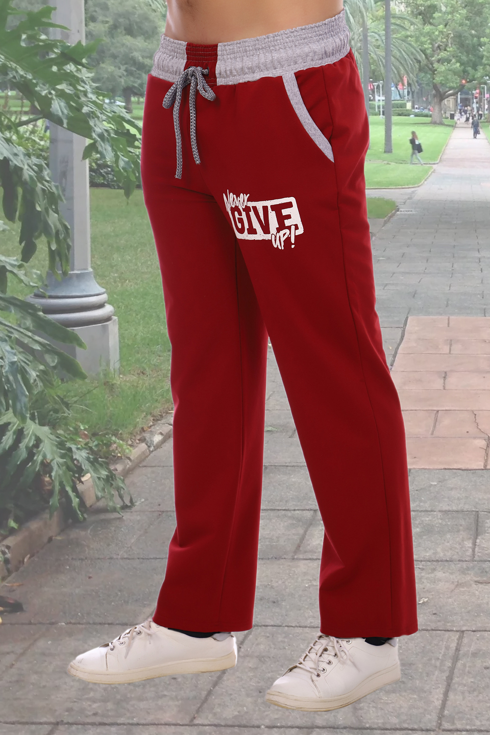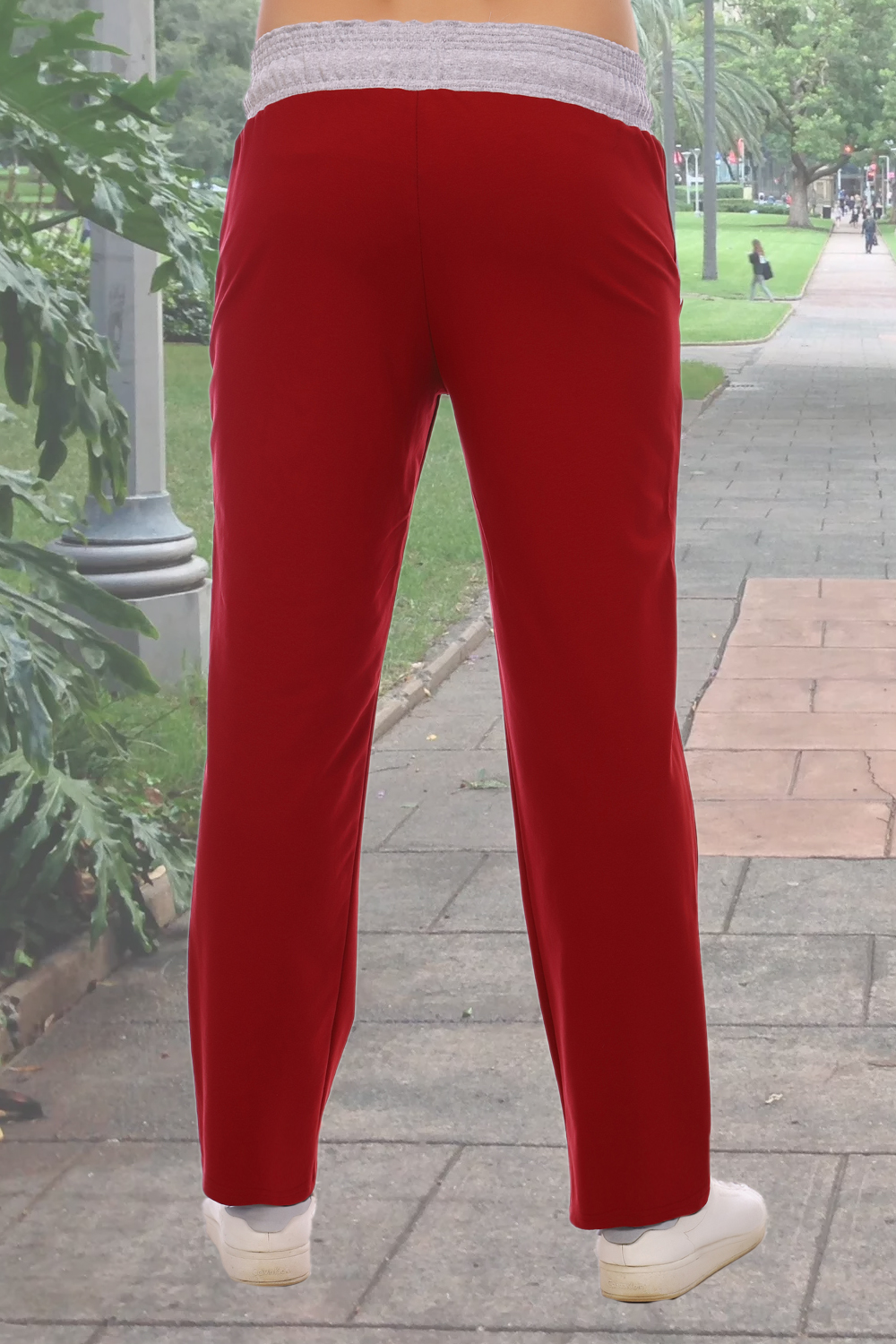 Брюки прямого кроя в стиле "casual". Карманы обработаны эластичной рибаной. На передне половинке брюк расположена контрастная печать. Пояс прошит на поясной машине. Спереди на поясе втачная планка с люверсами. Дополнительная регулировка пояса шнурком.