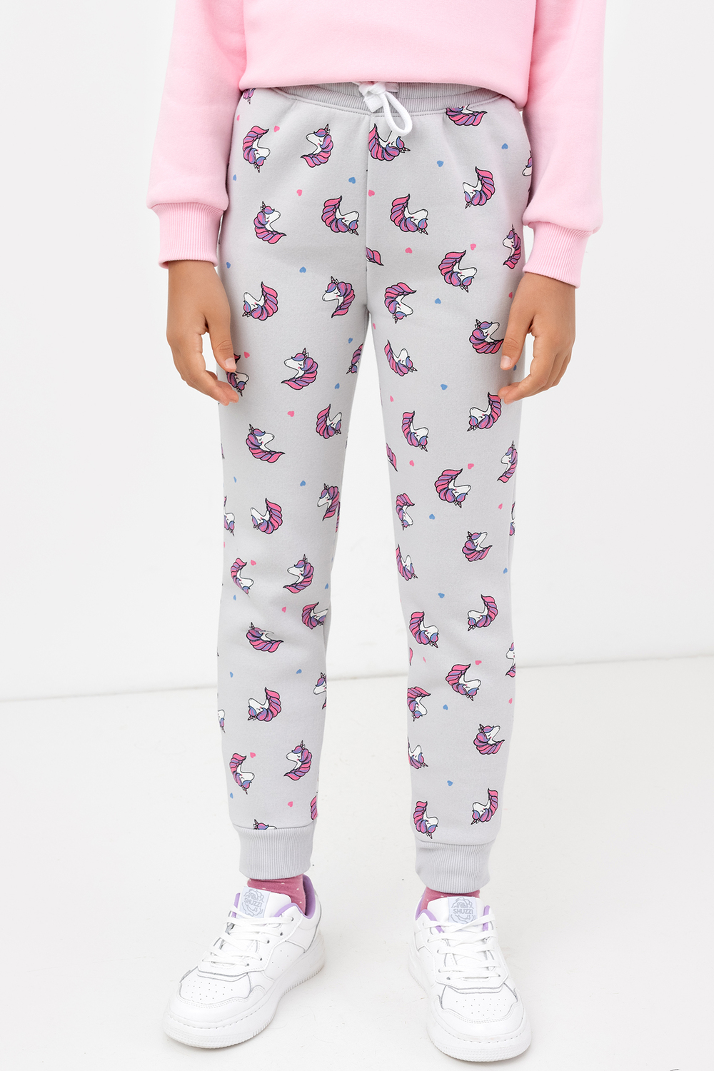 Брюки из трикотажного футера с теплым и нежным подчесом для девочек. Силуэт прямой. Пояс с резиной внутри и регулировочным шнурком-завязкой. Есть удобные боковые карманы. Штанины завершаются широкими манжетами. Мило и практично!