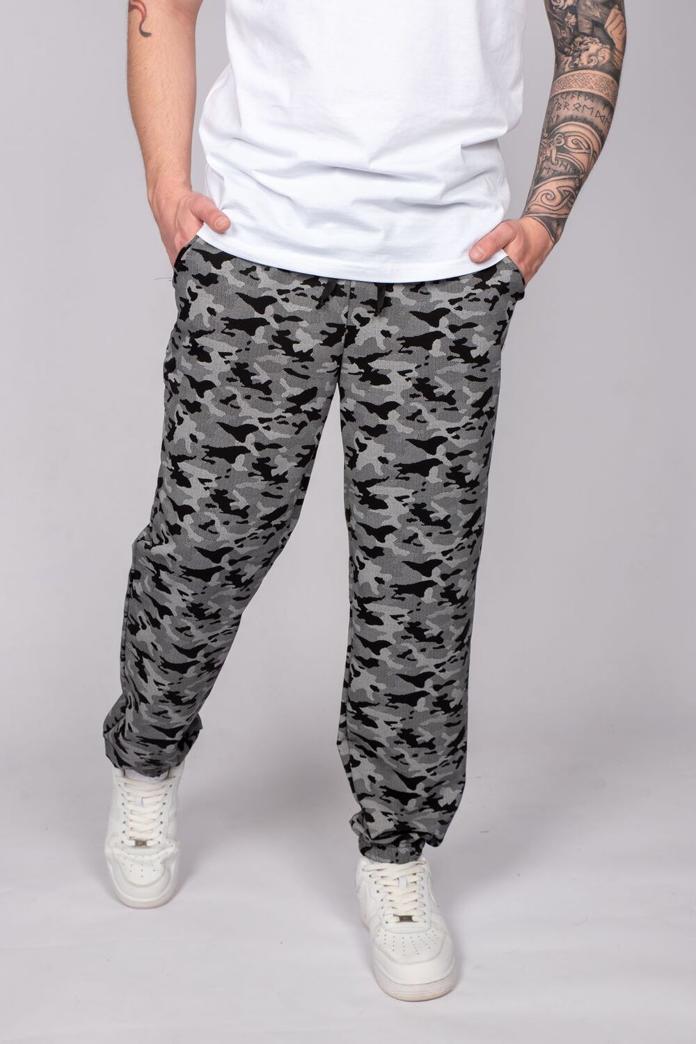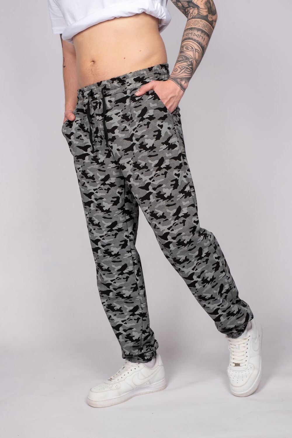 Стильные мужские джоггеры с модным в этом сезоне камуфляжным принтом подойдут любому парню, который любит собирать модные и удобные образы. Пояс отрезной, с резинкой и шнуром внутри. Брюки с карманами на передней половинке с отрезным бочком. По низу брюк манжеты с эластичной тесьмой внутри. Изготовлены из петельчатого футера с добавлением полиэстера и эластана. Подойдут на рост 182см.