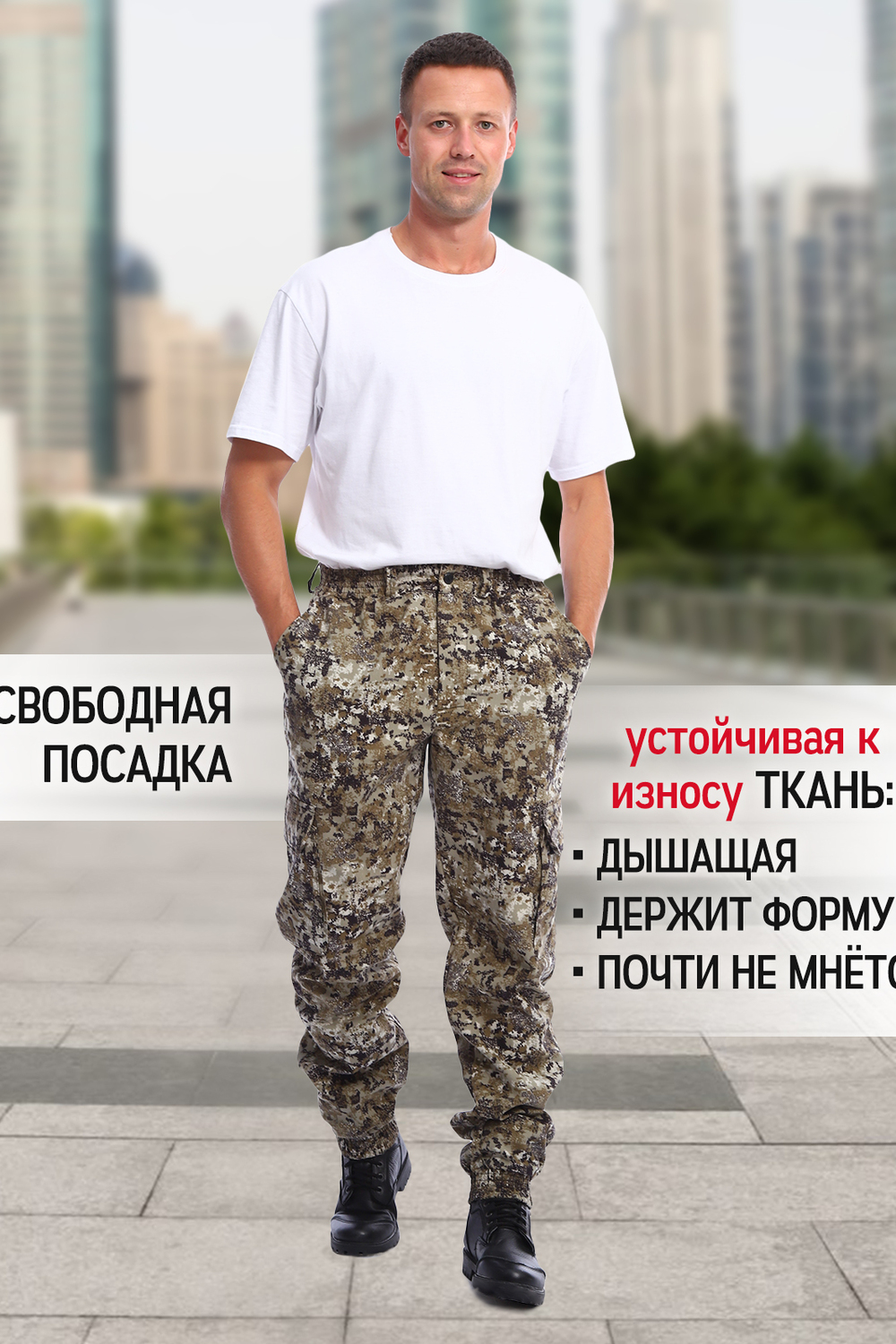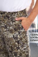 Брюки карго камуфляжные от Бренда "СКЕЛА" – это отличное решение для тех мужчин, кто предпочитает комфорт и практичность в одежде. Штаны тактические мужские изготовлены из смесовой ткани 35% натурального хлопка и 65% полиэстера, что придает им повышенную прочность и стойкость цвета при кажущейся легкости. Брюки джоггеры имеют два прорезных боковых кармана и два накладных вместительных кармана-полукнижка чуть выше колена, закрытые клапанами на липучке. Резинка в поясе позволяет очень комфортно подбирать для себя размер, подходит для мужчин с пузиком, имеют резинки внизу штанин. Штаны походные представлены в камуфляжном цвете расцветки стиля милитари "Пиксель", которая неразличима глазом на фоне летней природы умеренной полосы. Походные брюки станут незаменимы для тех, кто занимается рыбалкой, охотой, туризмом, военно-тактическими играми, походом и активным отдыхом. Представлен широкий размерный ряд, включающий большие размеры. Произведено в России.