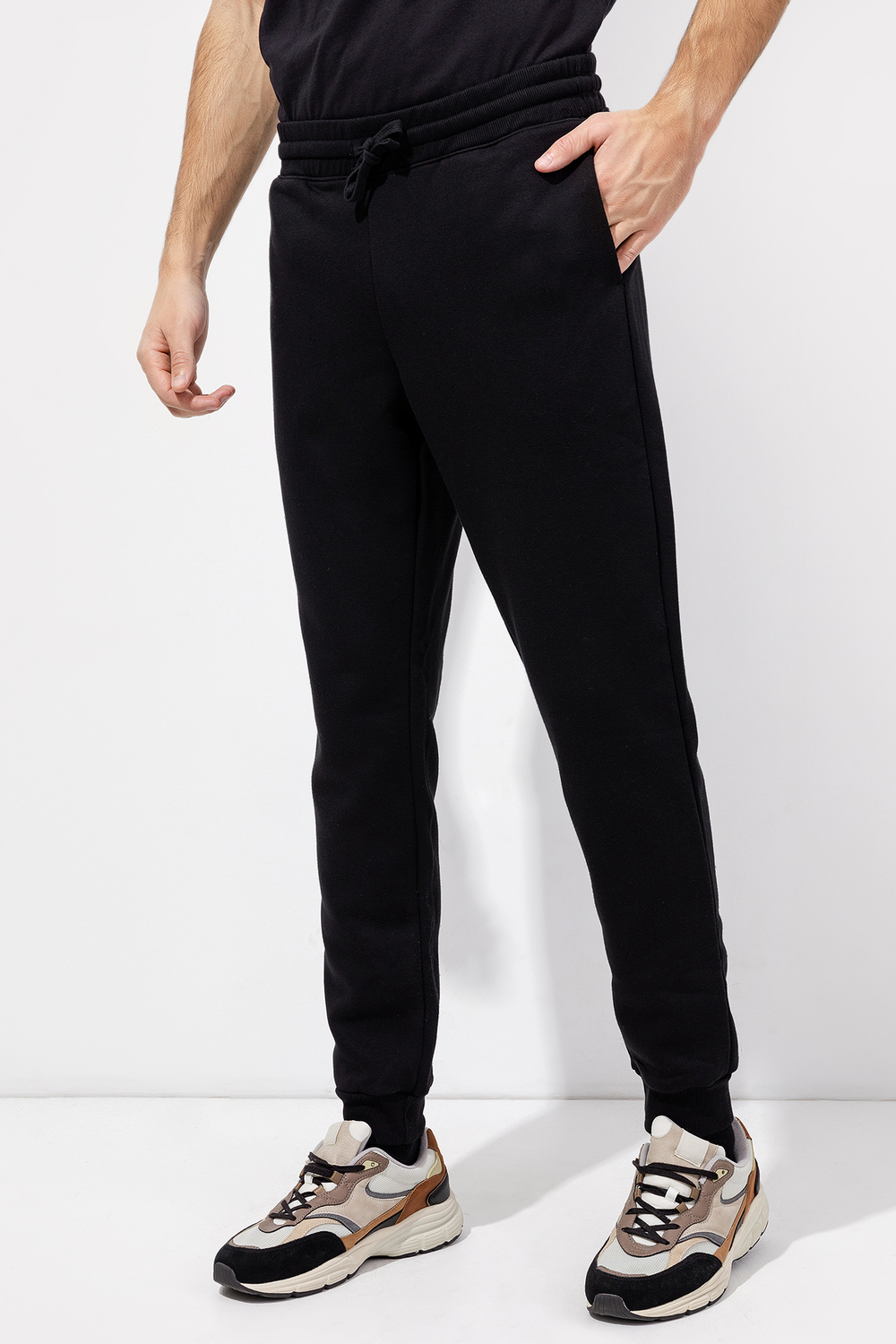 Стильные мужские брюки-джоггеры из трикотажного футера с теплым подчесом. Силуэт зауженный, штанины с манжетами. Есть удобные боковые карманы. В поясе – эластичная тесьма и шнурок-затяжка. Просто, комфортно, актуально!
